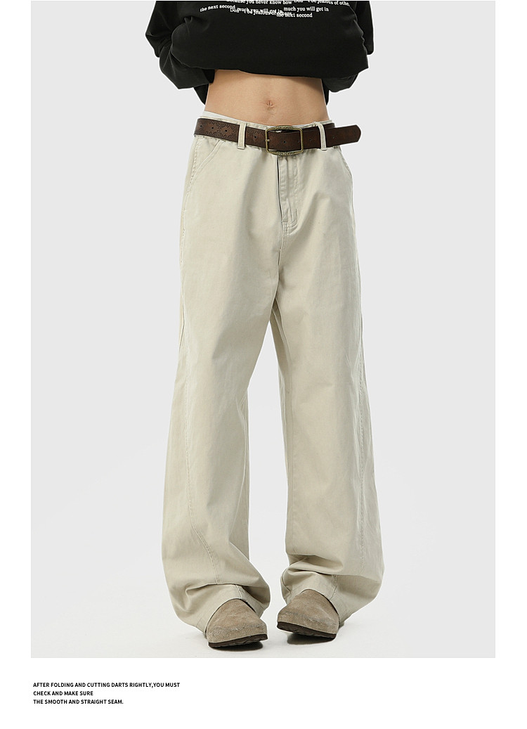 悟空有货 Модные брендовые винтажные прямые повседневные брюки, мужские весенние свободные универсальные рабочие брюки из чистого хлопка