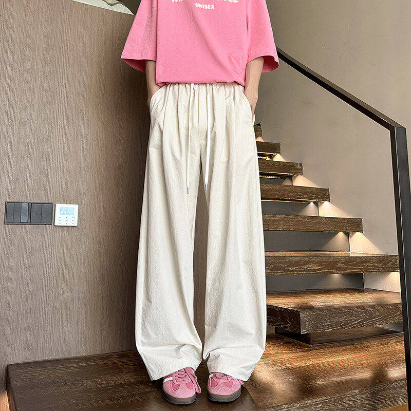 Ретро летние дизайнерские штаны, в американском стиле, большой размер, тренд сезона, свободный прямой крой