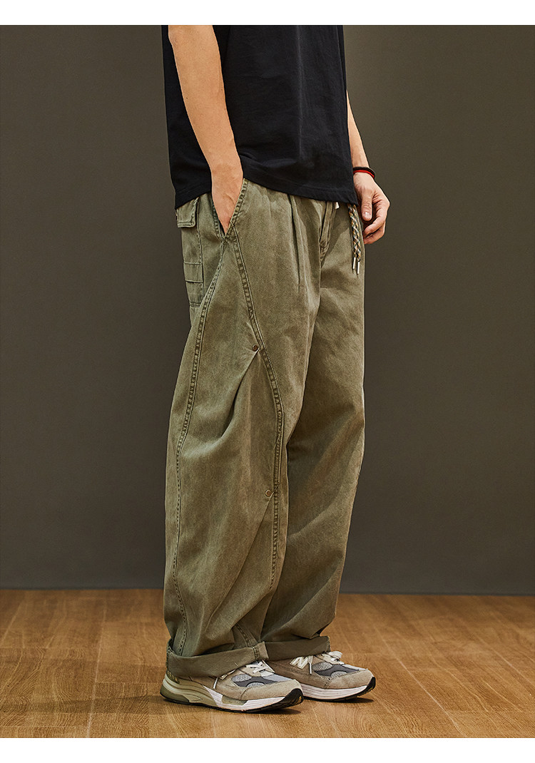 Летние японские ретро универсальные штаны, свободный прямой крой, на шнурках, оверсайз