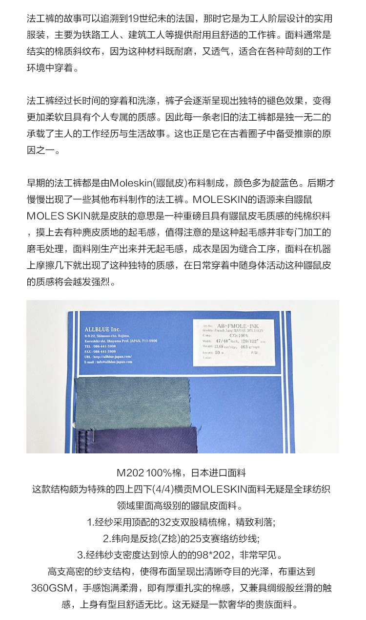 Mkszy 25ss Moleskin Moleskin Ice Blue Works Worns Casual штаны