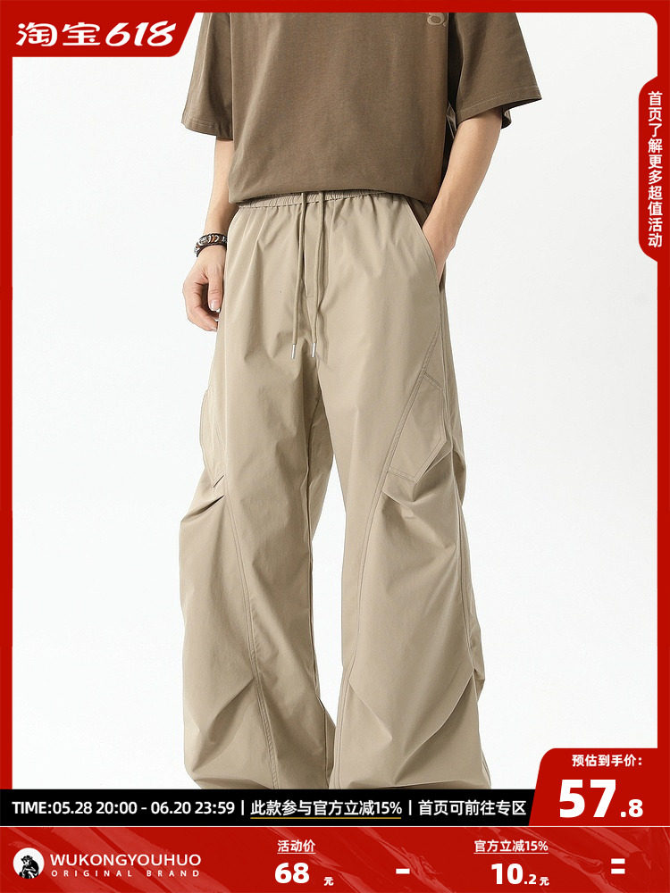 悟空有货 Дизайнерские дышащие штаны для отдыха, в американском стиле, оверсайз