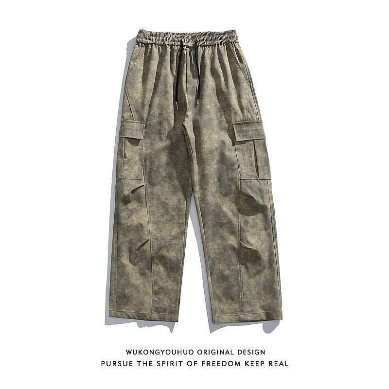 悟空有货 Мраморный парашютист, штаны, в американском стиле, свободный прямой крой