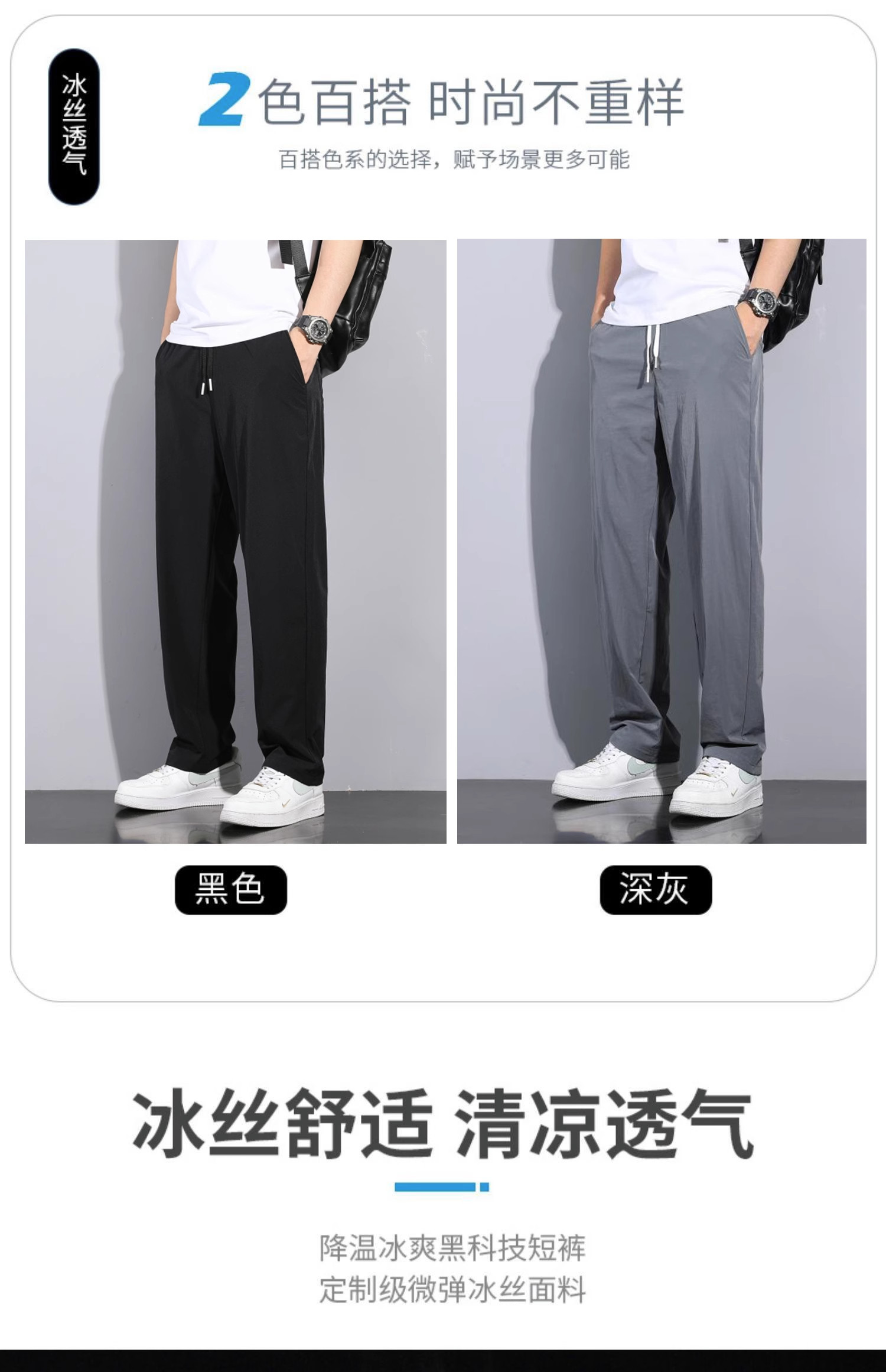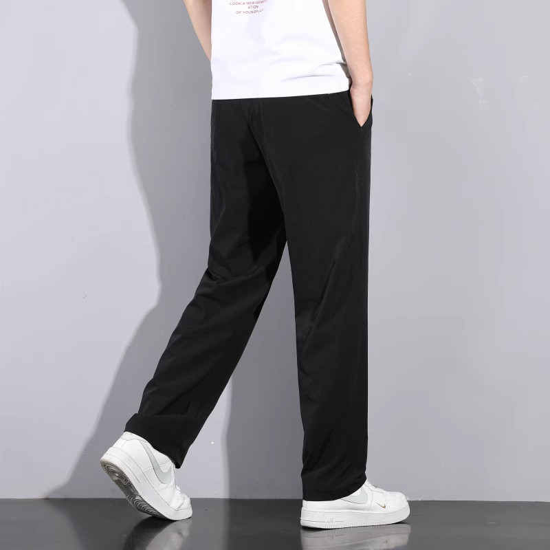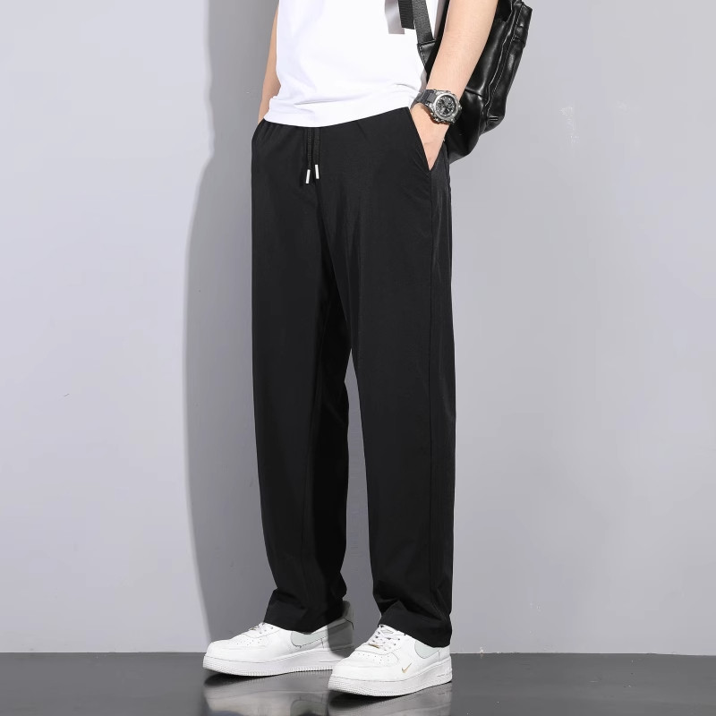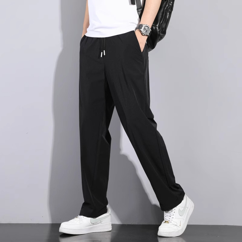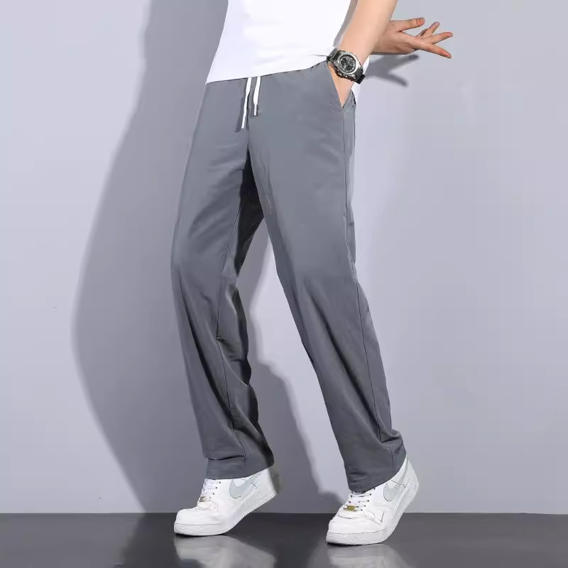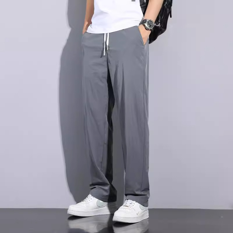 Мужские летние шелковые тонкие штаны, свободный прямой крой