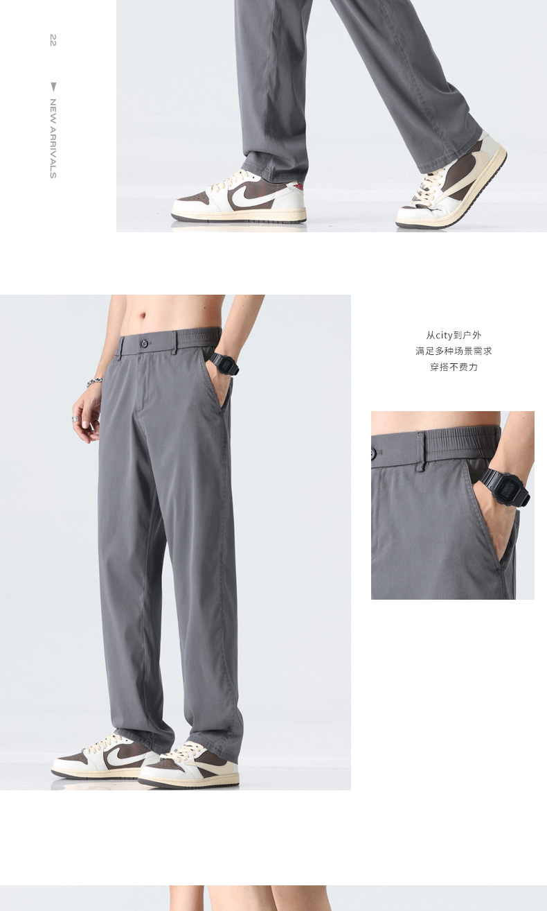Тонкие летние шелковые мужские штаны, свободный прямой крой
