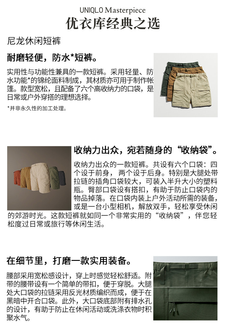 Мужские и женские нейлоновые повседневные шорты/брюки-карго Uniqlo 463870 476562