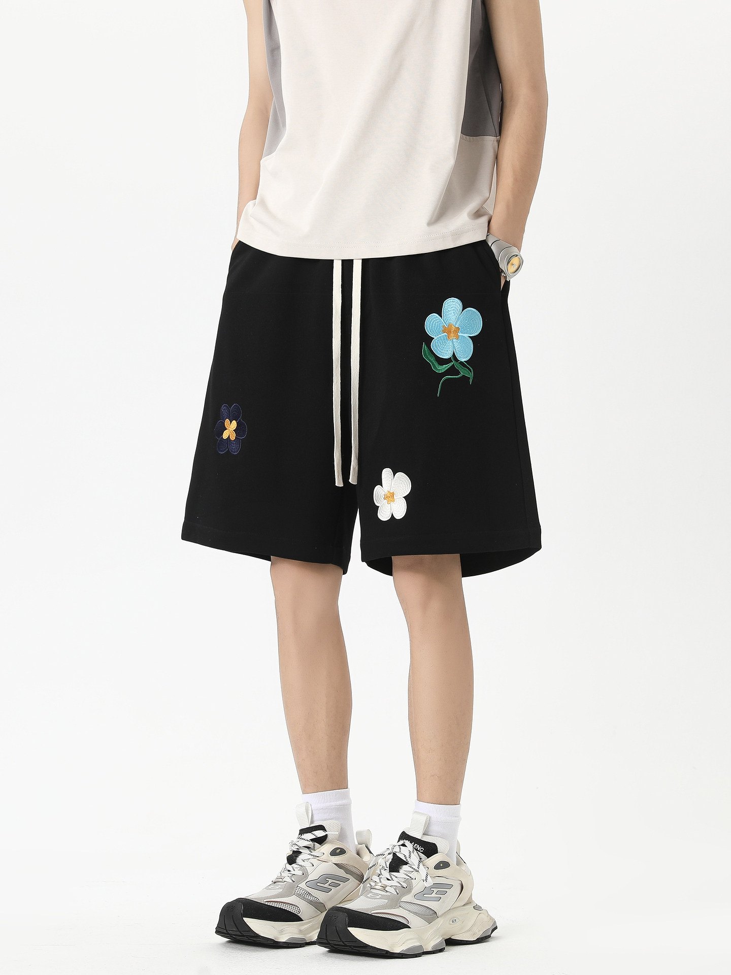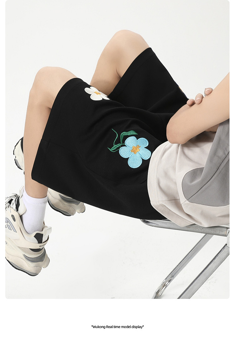 悟空有货 Летние шорты для отдыха подходит для мужчин и женщин для влюбленных, штаны, с вышивкой, оверсайз, свободный крой