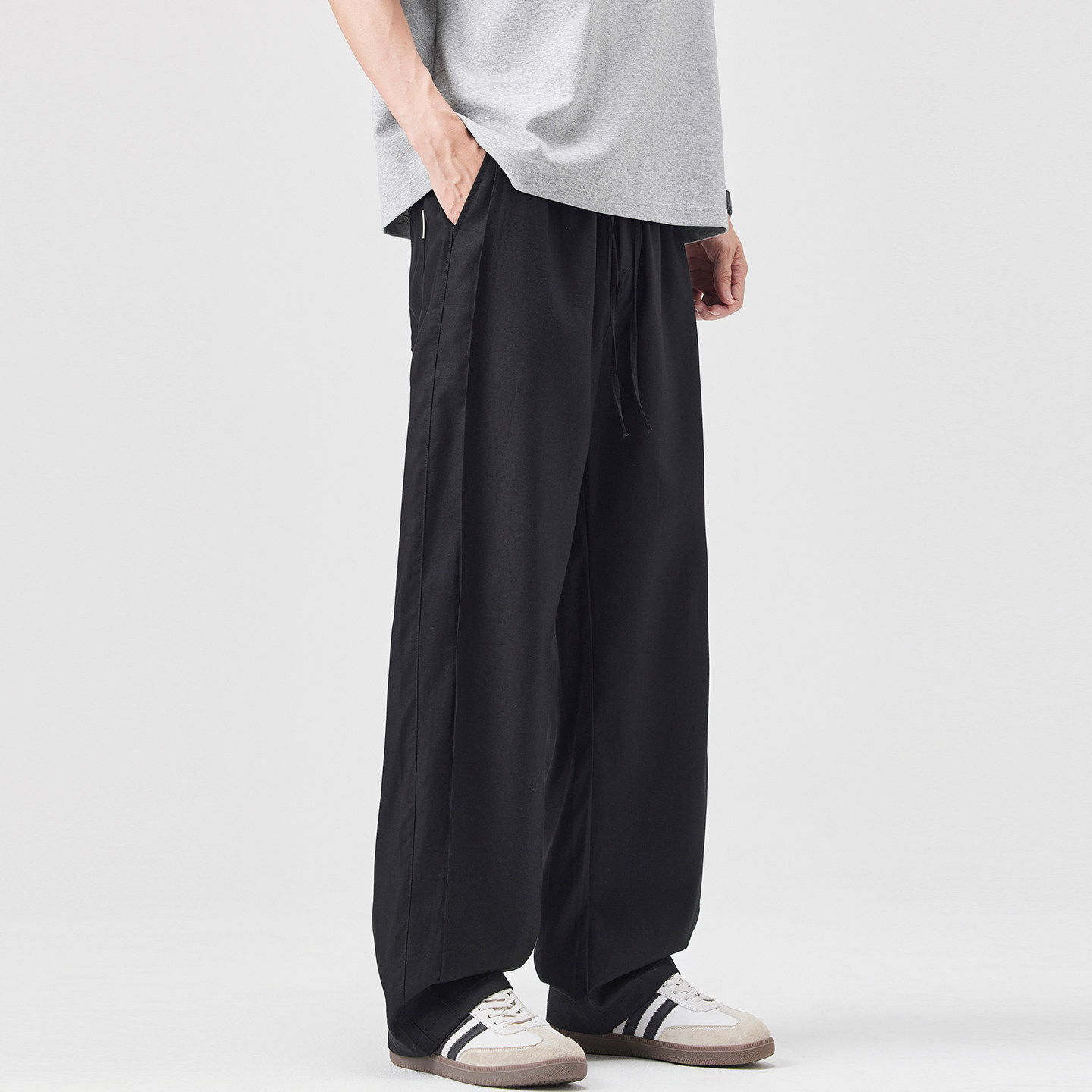 Летние мужские шелковые легкие и тонкие штаны, свободный прямой крой
