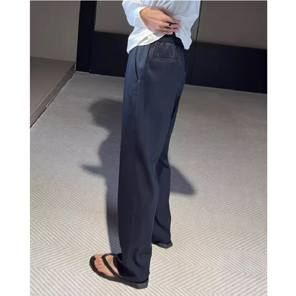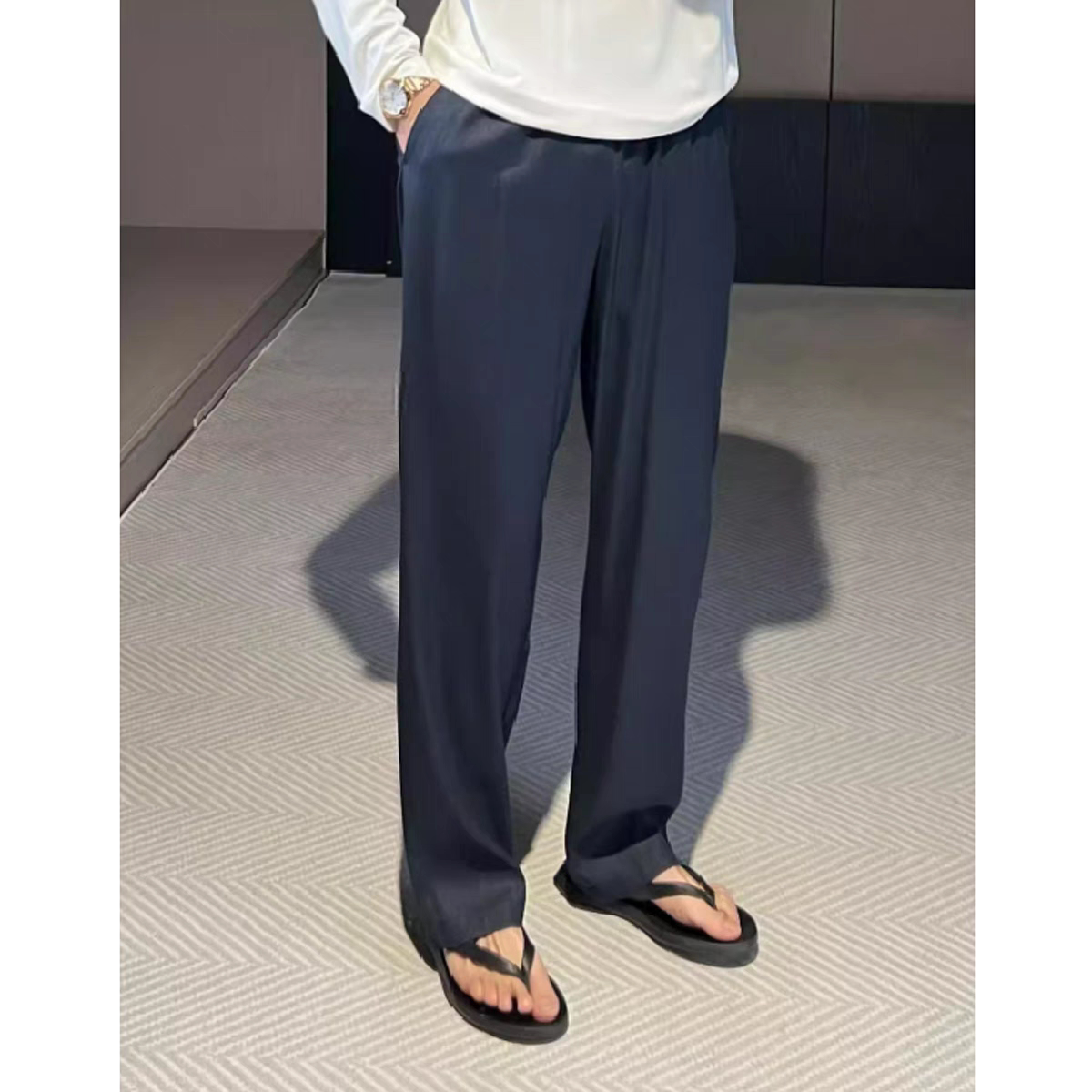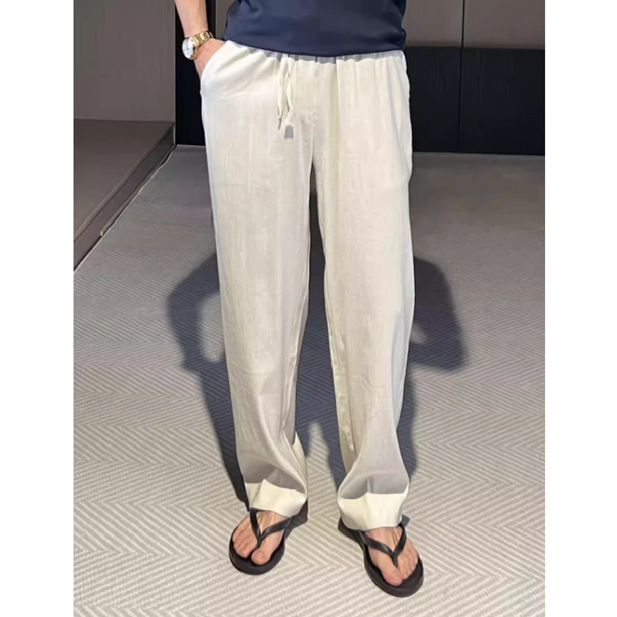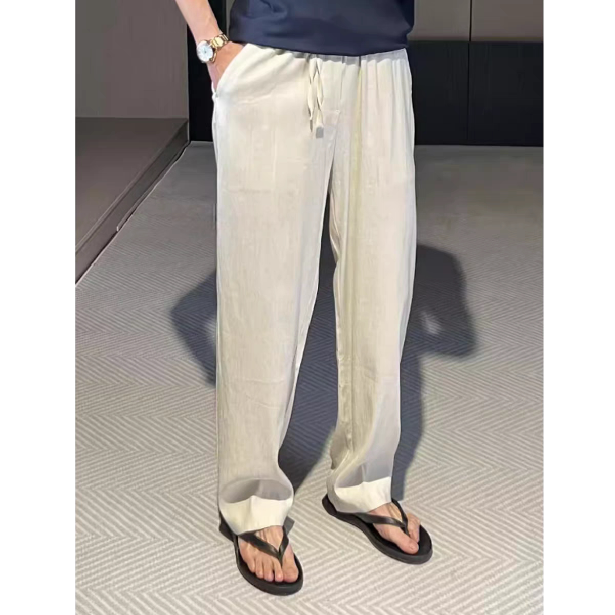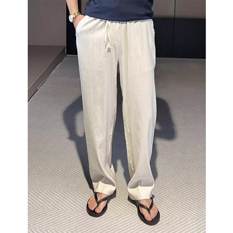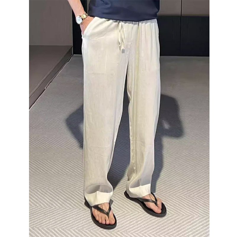 Летние тонкие шелковые дышащие приталенные штаны, высокая талия, свободный прямой крой