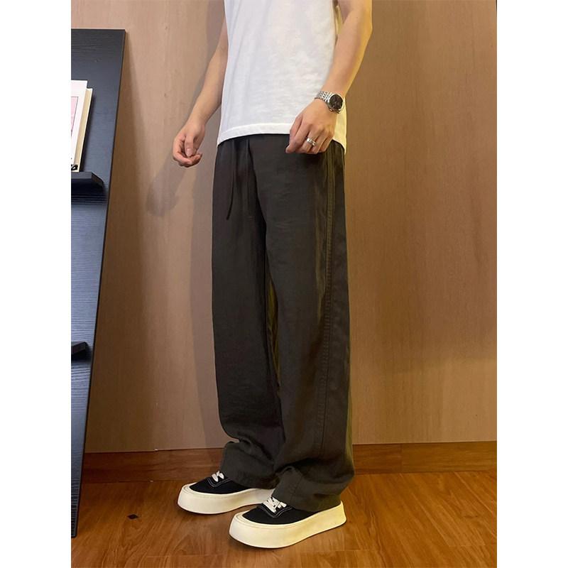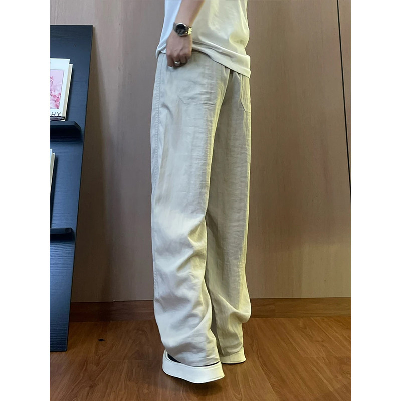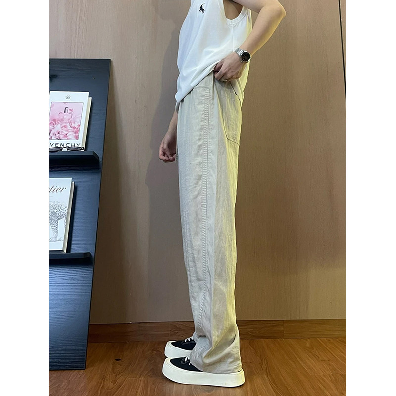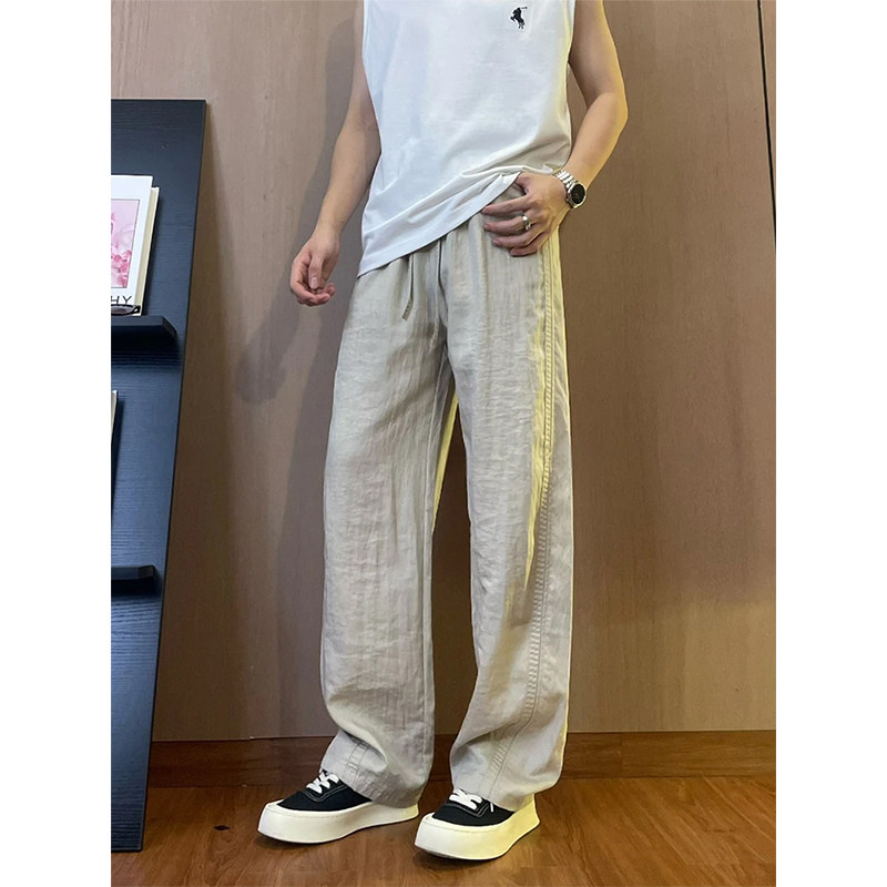 Тонкие дышащие шелковые штаны, из хлопка и льна, свободный прямой крой, защита от солнца