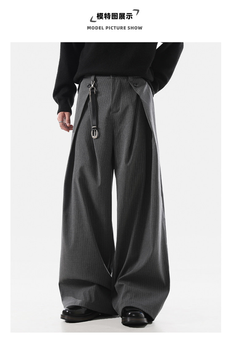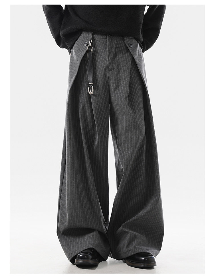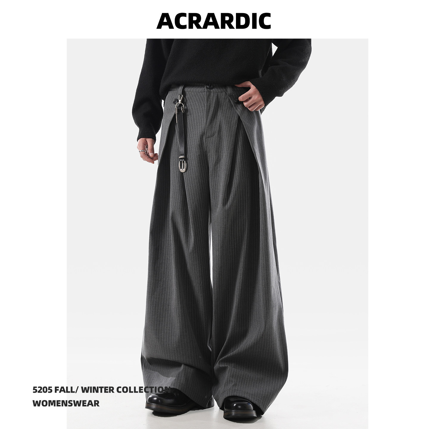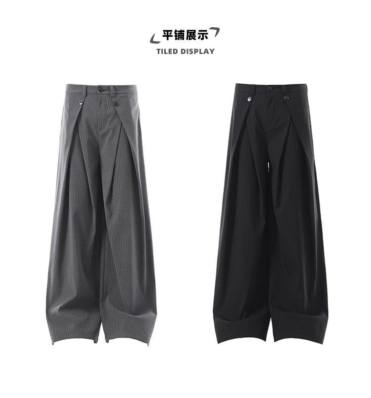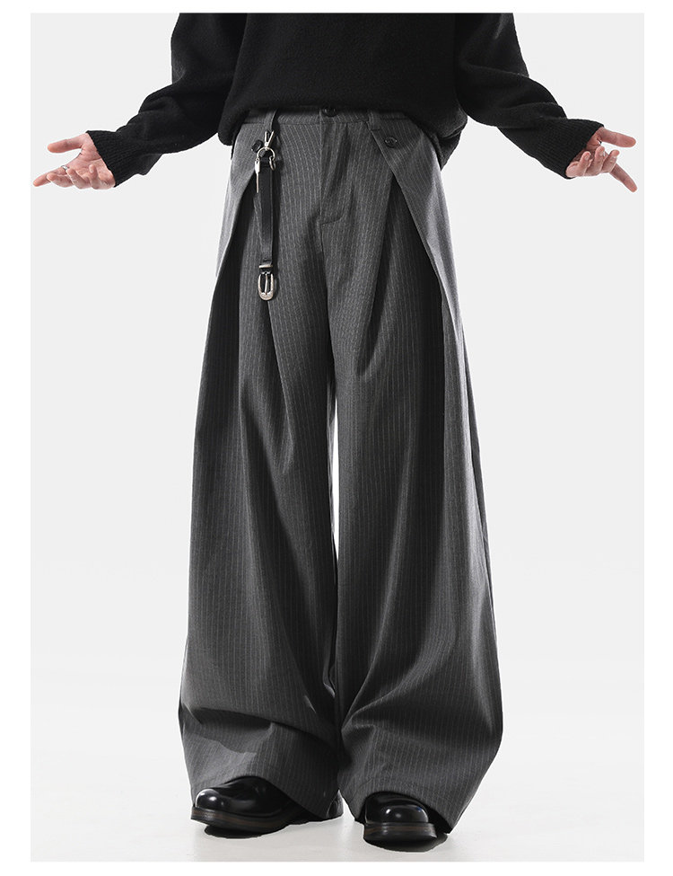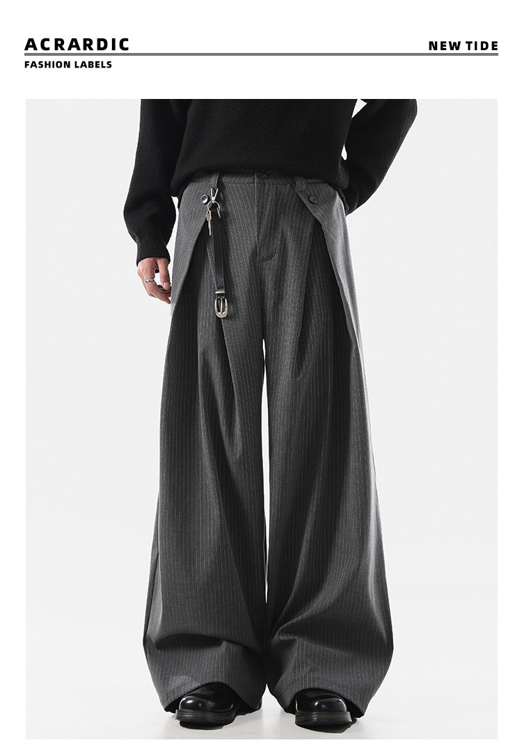 ACRARDIC2026 серые плиссированные широкие брюки А-силуэта в стиле «старые деньги» для мужчин и женщин, повседневные брюки в полоску с силуэтом для поездок на работу