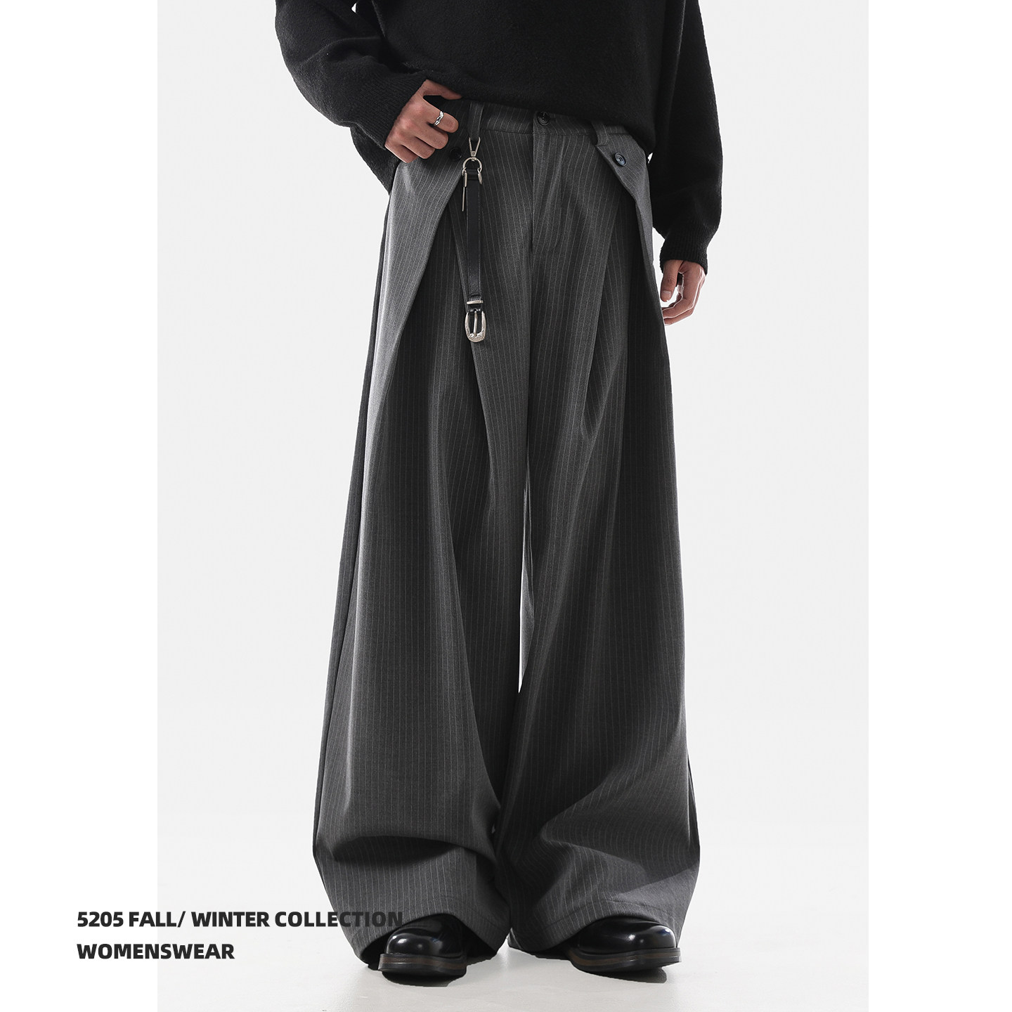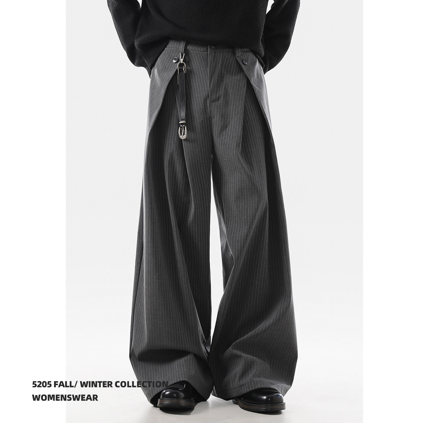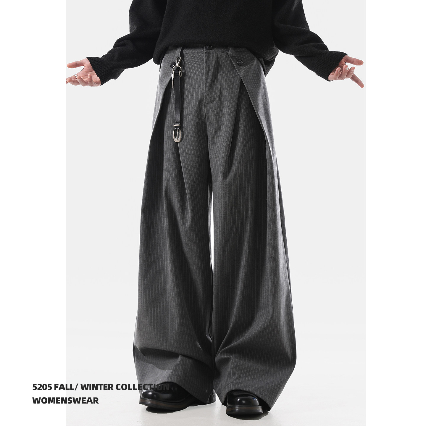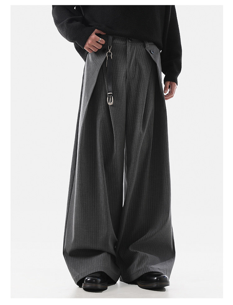 ACRARDIC2026 серые плиссированные широкие брюки А-силуэта в стиле «старые деньги» для мужчин и женщин, повседневные брюки в полоску с силуэтом для поездок на работу