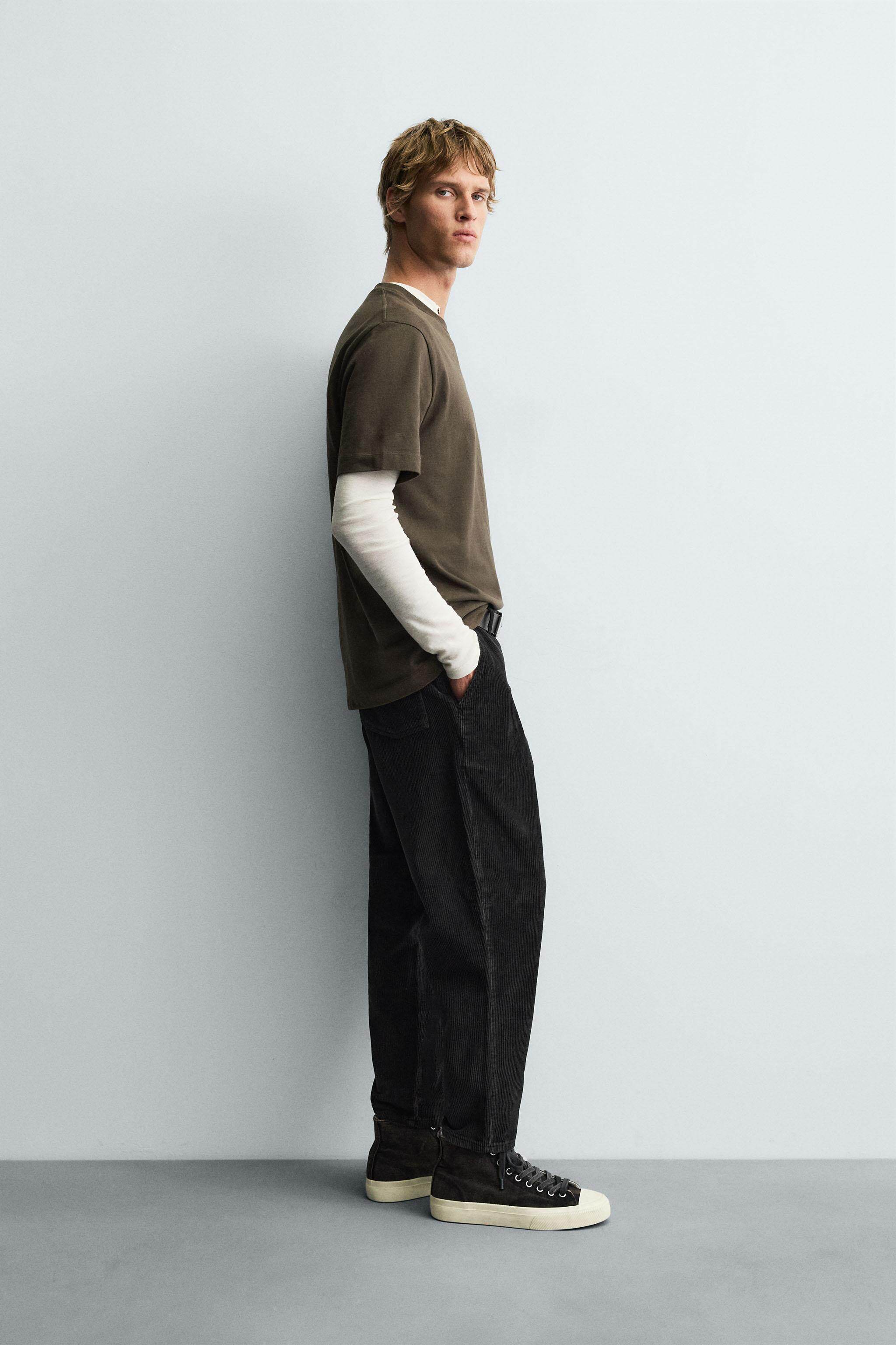 ZARA Осенние новинки 2025 года, мужские тонкие простые вельветовые брюки в стиле ретро 4302305 800
