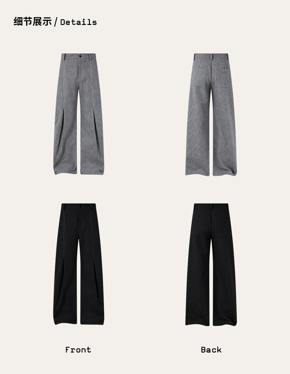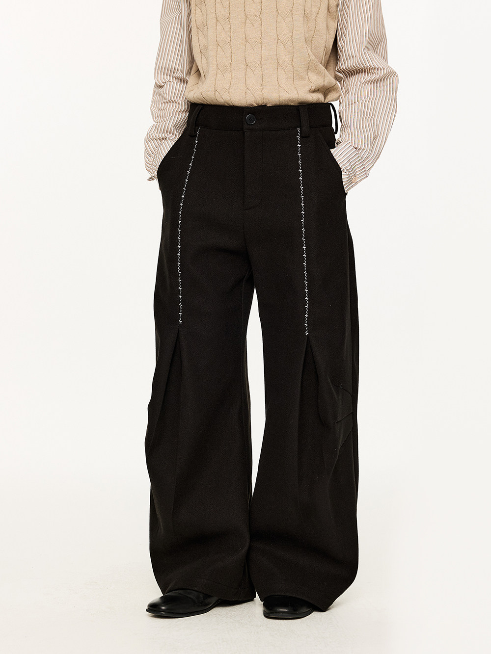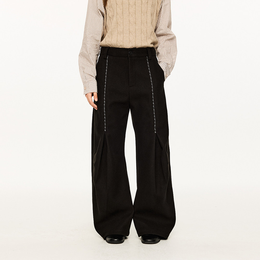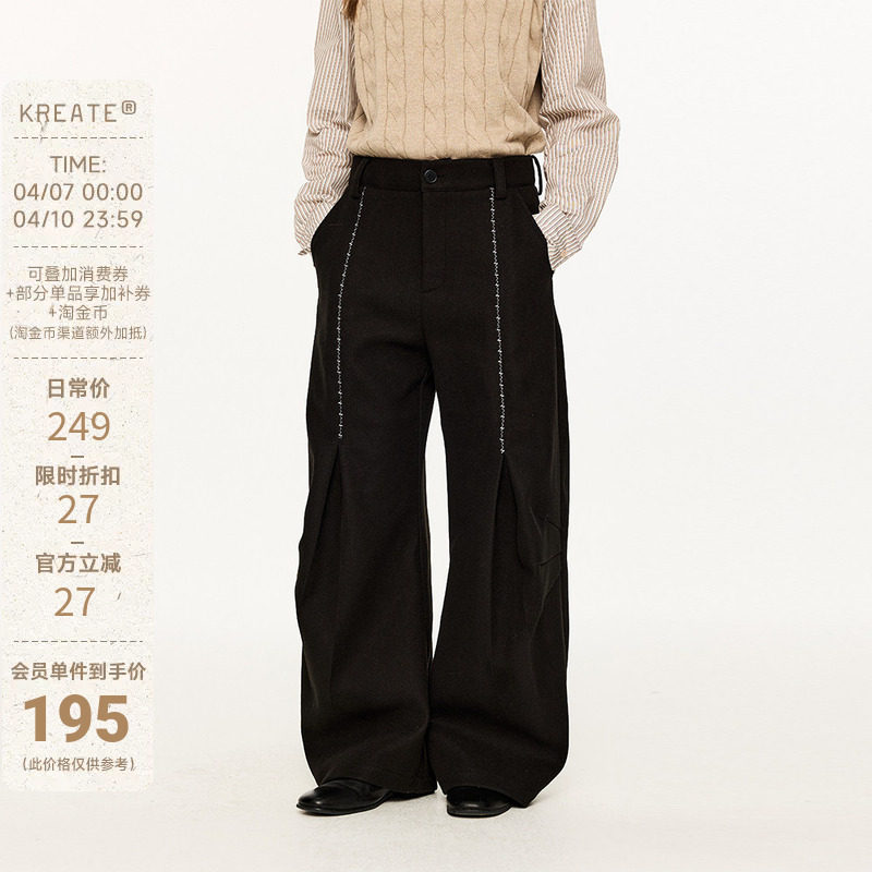 KREATE Шерстяные демисезонные штаны для отдыха, с вышивкой, свободный крой