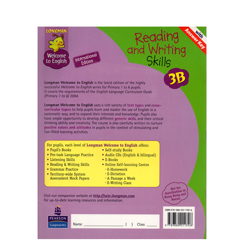 [Longman Welcome to English reading and writing skills 3B读写练习册 香港朗文小学英语教材]
