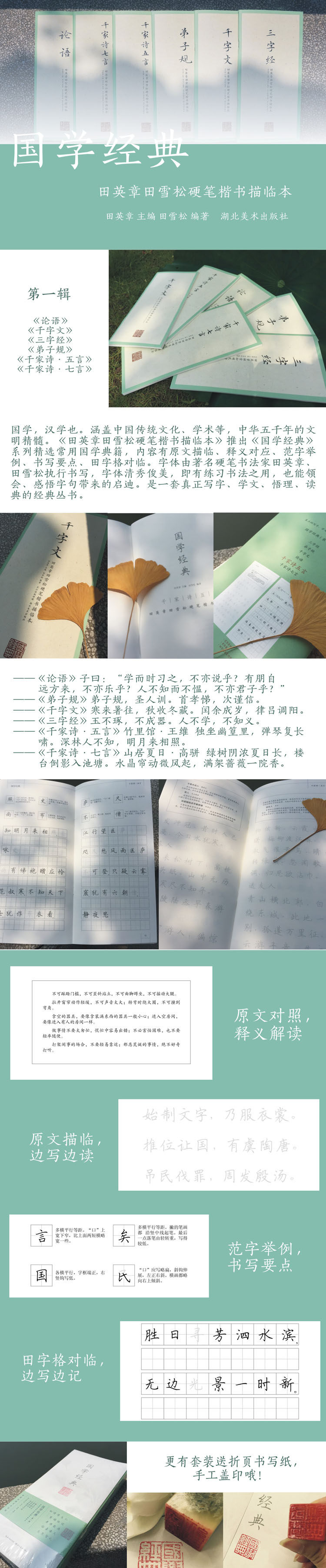 Синология, Синология тоже.Охватывая традиционную китайскую культуру и ученые, сущность цивилизации 5000 лет Китая.«Tian Yingzhang Tian Xuesong Hard Pen Kaishu Rhateals» запустил серию широко используемых китайских классиков в серии «Китайская классика».Шрифт написан каллиграфом ZM Hard Pen Tian Zhangzhang и Tian Xuesong. Шрифт красивый и красивый.Это классическая книга, которая действительно пишет, изучает, просветление и чтение.