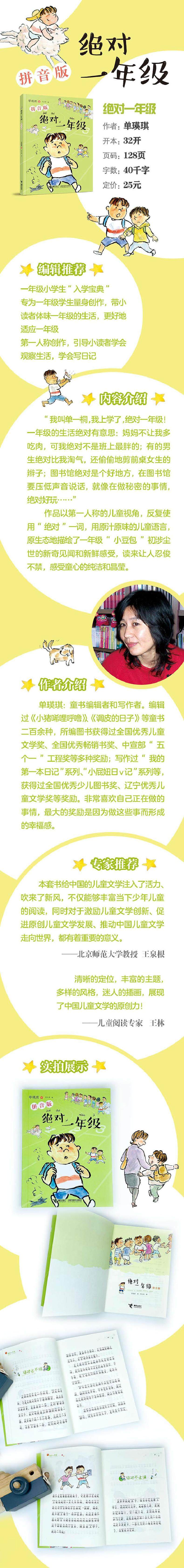“Меня зовут Шаньтун, я учусь в школе, точно в первом классе!Жизнь в первом классе, безусловно, интересная: мама не разрешает мне есть больше мяса, но я точно не самый толстый в классе; некоторые мальчики определенно более непослушные, чем я, и тайком стригут косички девочкам за первым столом; библиотека, безусловно, хорошее место, и при разговоре в библиотеке приходится понижать голос, как будто вы делаете что-то секретное, что определенно весело.……”В работе используется точка зрения одного ребенка и используется неоднократно.“абсолютный”Одно слово, использованное оригинальным детским языком, оригинально описывает первый класс.“Бобовая булочка”Новые идеи и свежие ощущения от первого входа в мир заставляют людей смеяться и чувствовать чистоту и кристаллизацию детской невинности.
