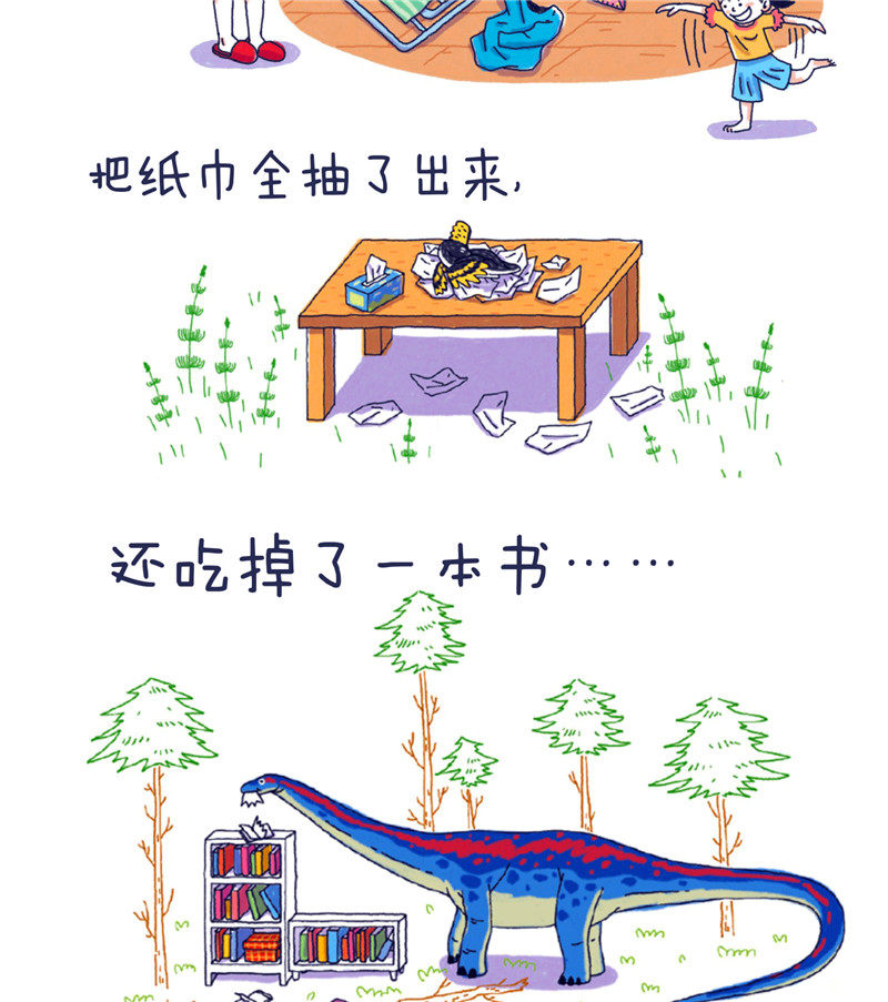 Кто устроил в доме беспорядок?Я разбросала закуски по полу, разбила зеркало, сломала только что купленную сушилку для одежды, вытащила все бумажные полотенца и съела книгу.……Это уникальная книга с картинками динозавров, в которой сочетается не только бурное воображение, но и интересная и познавательная информация о динозаврах.В комплект входит небольшая наклейка с изображением динозавра, которую легко читать и в которую интересно играть.