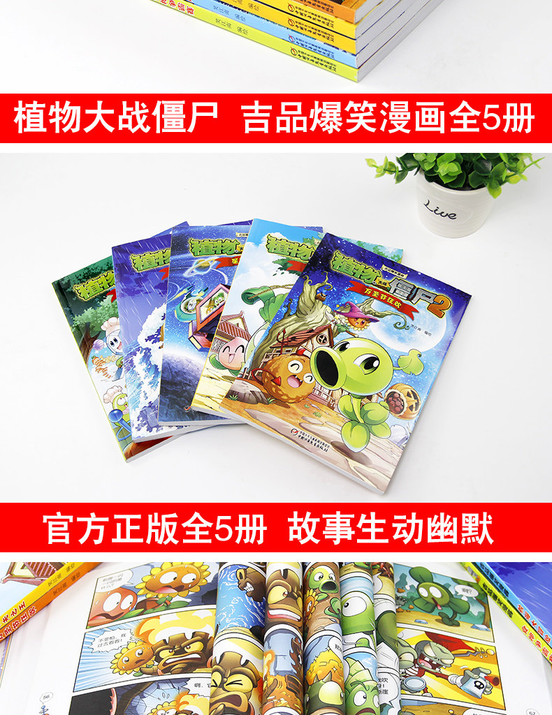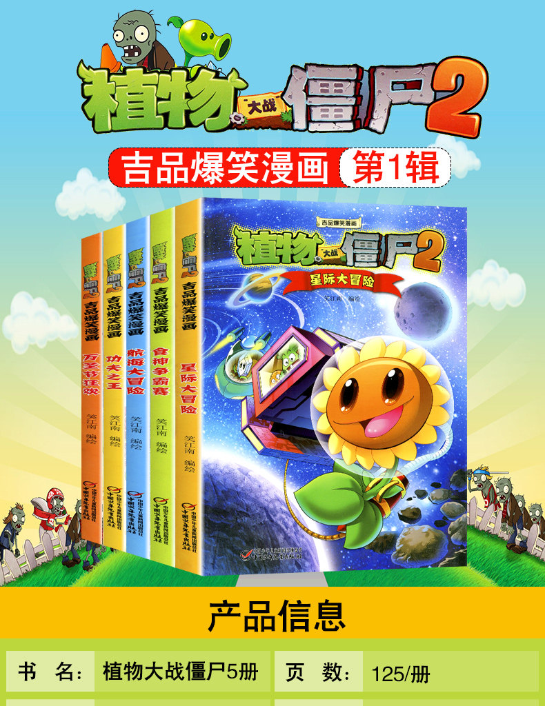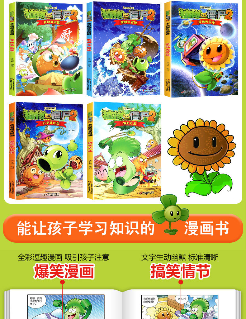 Первая серия полного набора из 5 томов растений против Zombies 2 комиксов Ji Pin Comic Comics Полные работы детских научных межзвездных приключений Бога Гегемония Король король