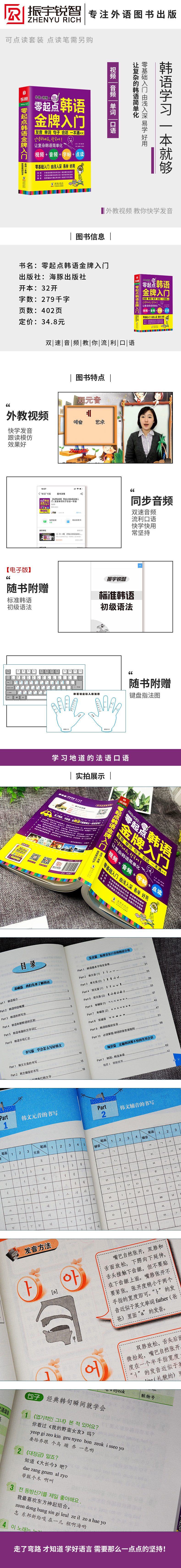 ● Эта книга имеет всеобъемлющий контент, от обучения корейскому произношению до корейской печати, обучения сцен и всеобъемлющий—— Все произношения, слова, предложения и разговоры на корейском языке могут быть решены в одной книге.