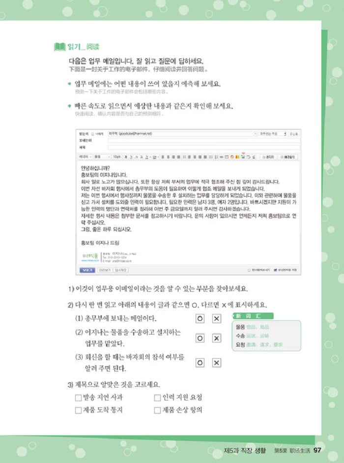 * Понимать и уметь выражать контент, связанный с личной повседневной жизнью, такой как личность, общественный этикет, корейская жизнь, работа, несчастные случаи, события и т. д.* Изучите словарный запас и выражения, связанные с эмоциями, мыслями, совместной жизнью, работой и социальными явлениями, и сможете правильно их использовать.