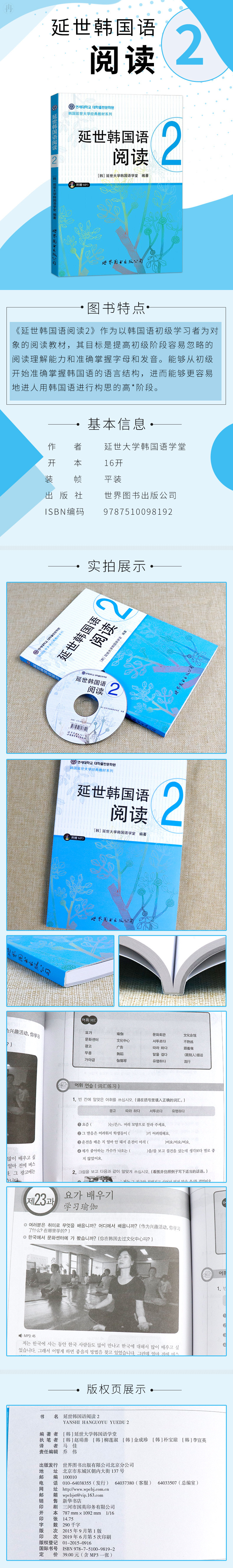 | Эта книга представляет собой оригинальный корейский учебник для чтения, введенный в Университет Йонсеи в Южной Корее.Китайская версия добавляет китайские аннотации на основе оригинальной версии, которая удобнее для учащихся китайцев.Этот набор учебников для чтения является вспомогательным учебником для «Юнши корейского», который можно использовать для обучения на практике и является практическим классическим учебным учебником Корейского обучения. |