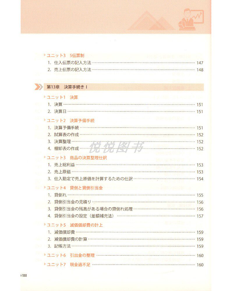 Глава 1 Основы книжных записейⅰ ユニット 1 книга 1. Определение книги и тип……………………………………………………………………… 001 2. Цель книги и период конференции………………………………………………………………… 002 ユニット 2 таблица ссудных ссудных фото 1. Стол ссуд ссудного кредита……………………………………………………………………………… 002 2. Элементы списка кредитов и кредитов (активы, долг, чистые активы (инвестиции))……………………………… 003 ユニット 3 捜 yi Расчеты книги 1. Расчеты книги……………………………………………………………………………… 004 2. Элементы расчетной книги (наслаждайтесь, плата)…………………………………………………… 005 ユニット 4 Книга ссудных ссуд и книга расчета прибыли 1. Важность списка кредитных кредитов и книги расчета прибыли……………………………………… 006 2. Формула расчета чистых преимуществ………………………………………………………………………… 006 Глава 2 Основы книжных записей Ⅱ………………………………………………………………………………………………………………………………… ……… ユニット 1 Официальный перевод 1. Цитата о книге…………………………………………………………………………… 011 2. Официальный перевод……………………………………………………………………………………… 012 ユニット 2 Роман 1. Расследование……………………………………………………………………………………… 017 2. Метод определения и записи………………………………………………………………………… 018 3. Шум……………………………………………………………………………………… 019 4. Определение Sliver………………………………………………………………………… 021 Глава 3 Книга ежедневно рисунок и рисунок …………………………………………………………………………………………………………………………………… …… ユニット 1 покупка и приобретение продукта 1. Разделительный метод и метод из трех частей………………………………………………………………………… 025 2…………………………………………………………………………………… 028 ユニット 2 日本きと典 1…………………………………………………………………………………… 032 2. Скидка……………………………………………………………………………………… 033 ユニット 3 Дополнительная книга 1. Вход…………………………………………………………………………………… 035 2. загрузить…………………………………………………………………………………… 036 3. Продукты имеют высокие цены……………………………………………………………………………… 036 Глава 4 наличными и подготовьте снятие …………………………………………………………………………………………………………………………………… …… ユニット 1 снятие наличных денег 1. наличные на книге…………………………………………………………………………… 039 2. Недостаточно денег (средний период и расчет)…………………………………………………………… 041 ユニット 2 нормальная предоплата и регулярная предоплата 1. Обыкновенная предоплата наличными………………………………………………………………………………… 046 2. Регулярный депозит………………………………………………………………………………… 046 ユニット 3 как сиденье 1. Будь кассиром………………………………………………………………………………… 048 2. Используйте свой собственный маленький резак………………………………………………………………………… 049 3. поручить как место………………………………………………………………………………… 050 ユニット 4 маленький рот снятие наличных денег 1. Маленькие деньги………………………………………………………………………………… 052 Глава 5 …………………………………………………………………………………………………………………………………… …… ユニット 1 рисунок ручной работы 1. Форма рук………………………………………………………………………………… 057 2. Краткая форма рук………………………………………………………………………………… 057 3. Для замен