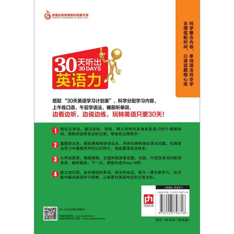 Эта книга направлена на создание читателей“ слова”“ грамматика”“ сессия”1200 высокочастотных слов, 30 грамматических точек, 30 выбранных сеансов, дополненные&Ldquo; 30 -дневная форма обучения английскому языку&Rdquo;Еще одна важная особенность «Тридцати дней для услышанности английской власти» - это включение слов, хороших предложений и диалогов. Полем