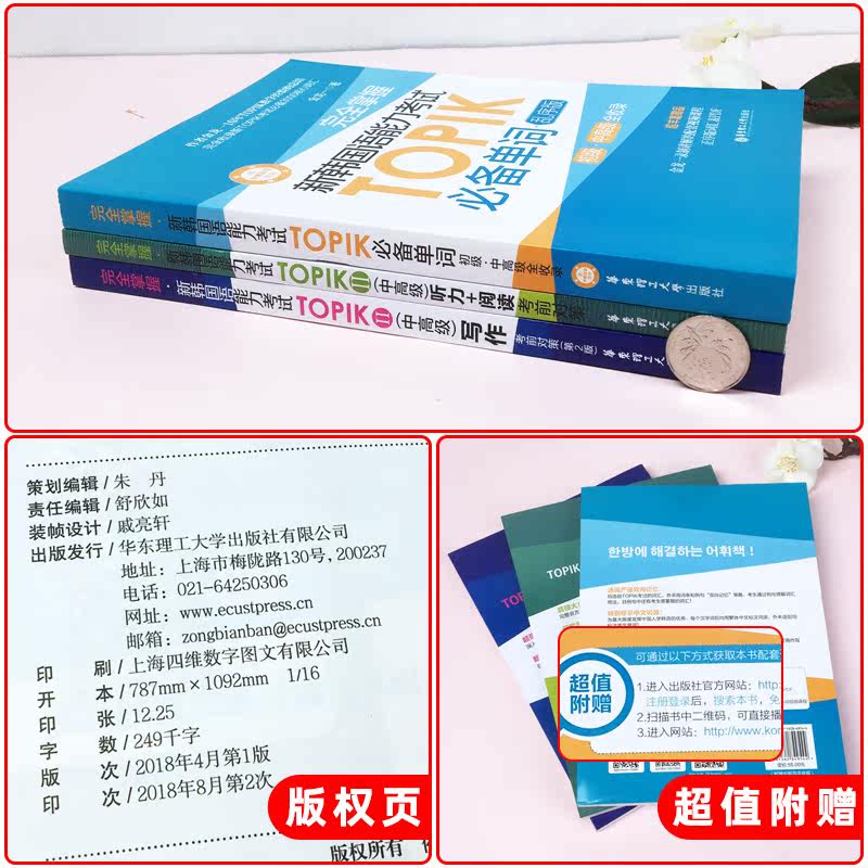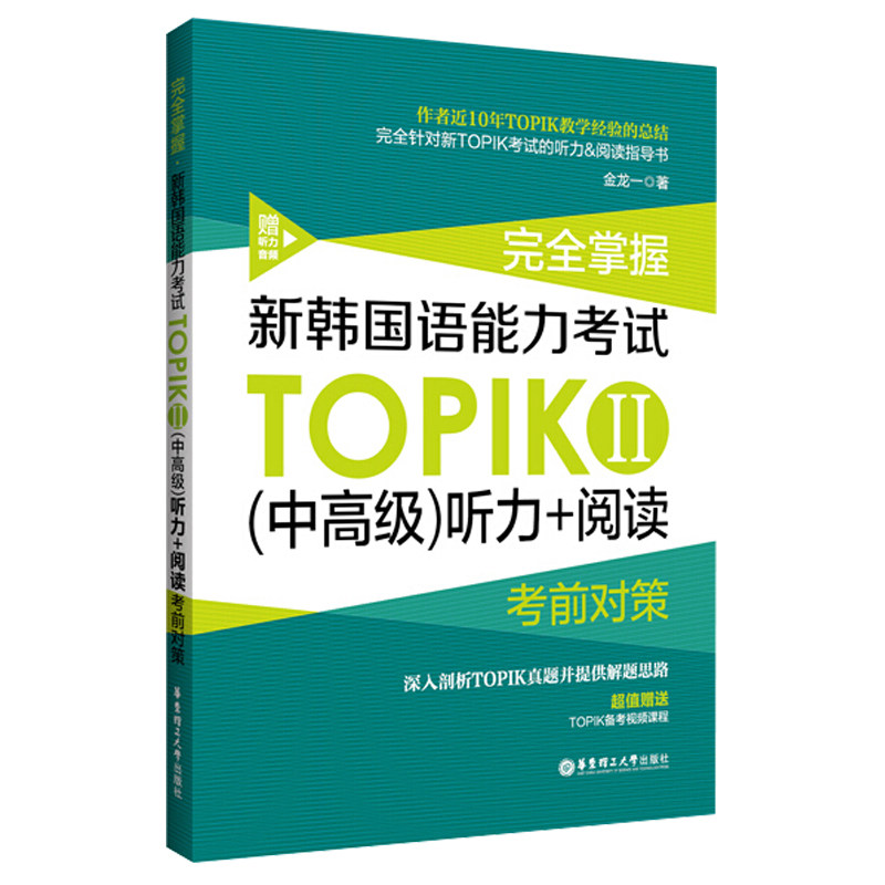 Краткое изложение опыта преподавания автора Джинлонга на протяжении более 10 лет E -книга "Topik Essentials" E -Book имеет более миллиона раз Полностью включен ядро, должен иметь словарный запас 3000, все из которых являются словарным запасом, который появился в тесте Topik Следуйте за книгой Отличный подарок: Jinlongyi Специально записано в поддержку анализа слов Video Course ++ Китай и Южная Корея Бингуальная загрузка MP3+PDF положительная версия для предисловия+50 Учебная карта Юань Худзин, QR -код в книге по сканированию электронных данных может быть получена. |