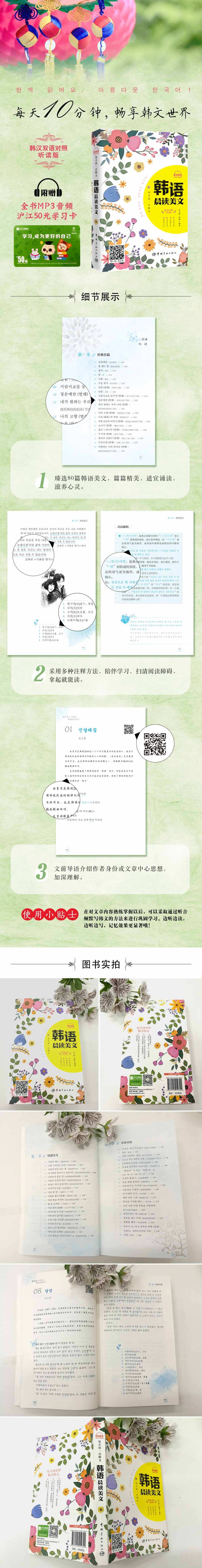 | *Сет в классике 80 изысканная корейская, умеренная по длине, красноречивая, подходит для чтения. *Каюта -Перечитав Прокомментируйте основные точки синтаксиса и сложные слова, очистите препятствия, возьмите и прочитайте их. *Сканировать код и слушать Каждая статья прилагается к двуммерному кодексу произношения профессиональных иностранных учителей, сканирования и слушания. ![]() |