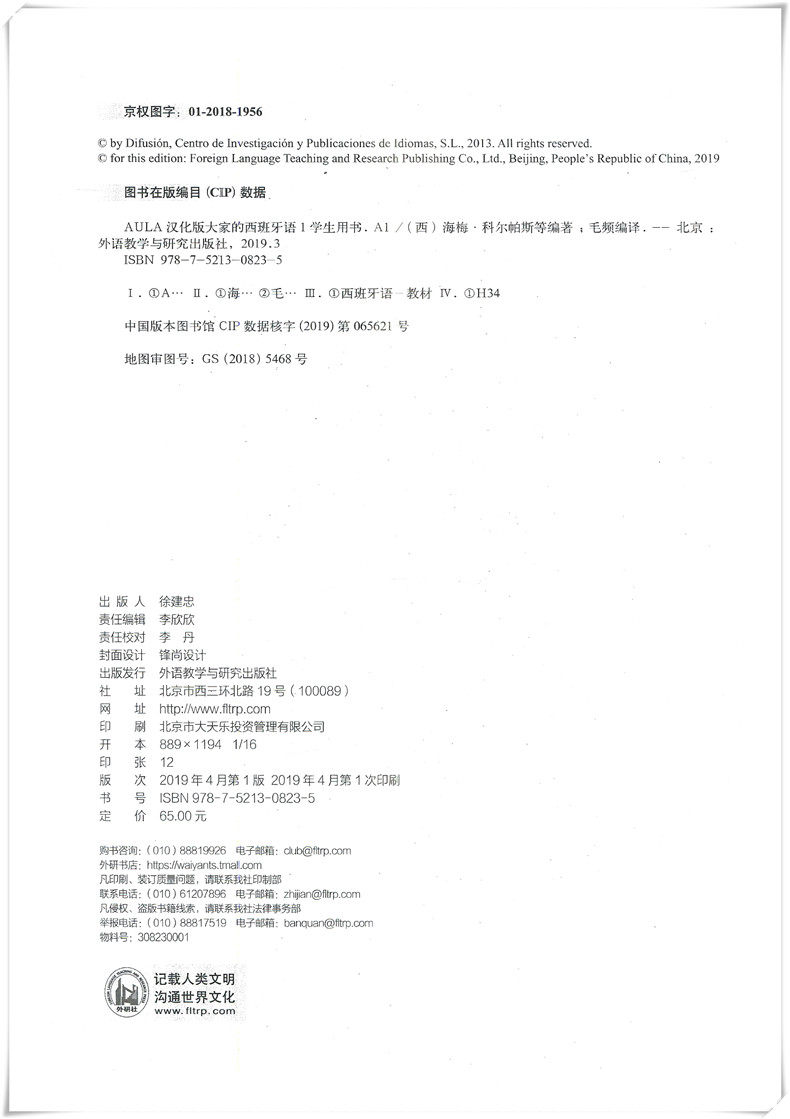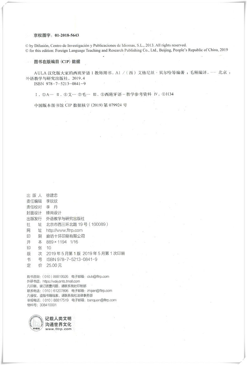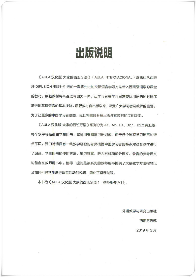 [Официальная федерация прямой прямой прямой] Китайское издание иностранного исследовательского института Аул Испанский 1 Три, кто ученик учитель A1 A1 Учитель A1 Книга A1 Практика A1 Zero Basic Испанский