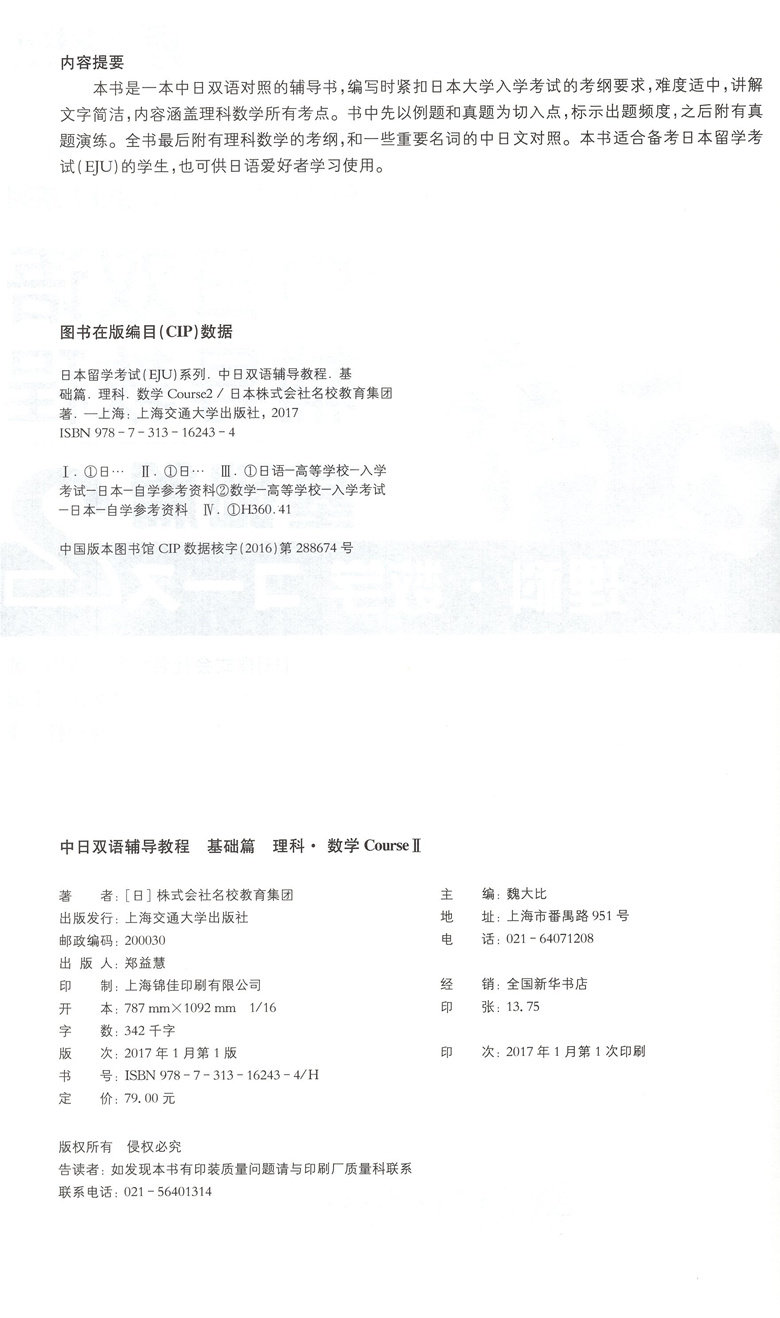 Японская исследование за рубежом экзамен eju серия Sino -Japanese двуязычное консультирование Основные статьи 2 Научная математика Шанхай Цзиотонг Университет Университет Пресс издательство Китай -Джапонская математика средней школы по математике