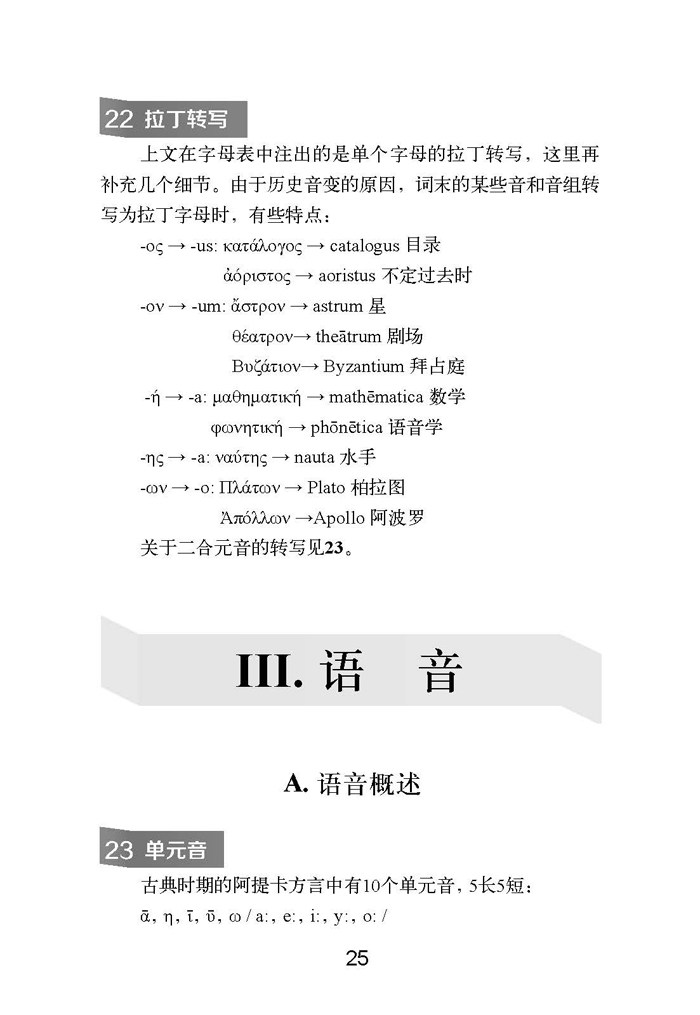 В конце книги есть введение в современный греческий язык (см. Приложение II), указатель терминов, словарный указатель греческого языка, китайский словарь.— греческий словарь и индекс словарного запаса английского языка.