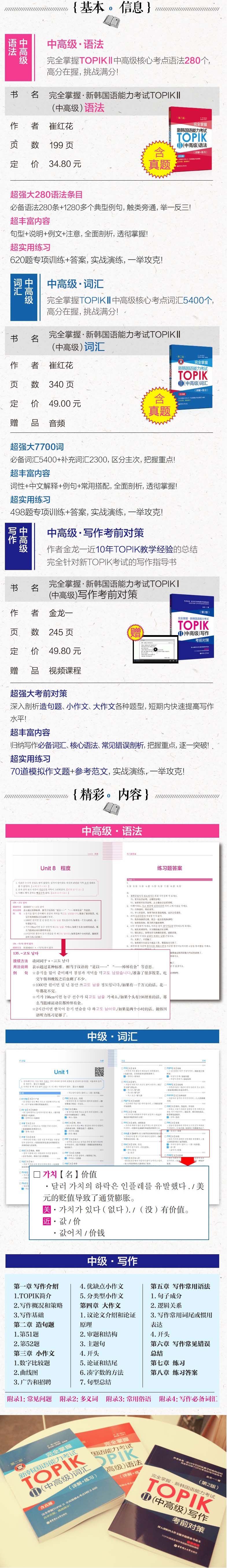 Все 4 тома новой корейской тест способностей мандарина Topik Medium и старший корейский словарь+грамматика+письменность+время времени корейского промежуточного учебника корейский слов