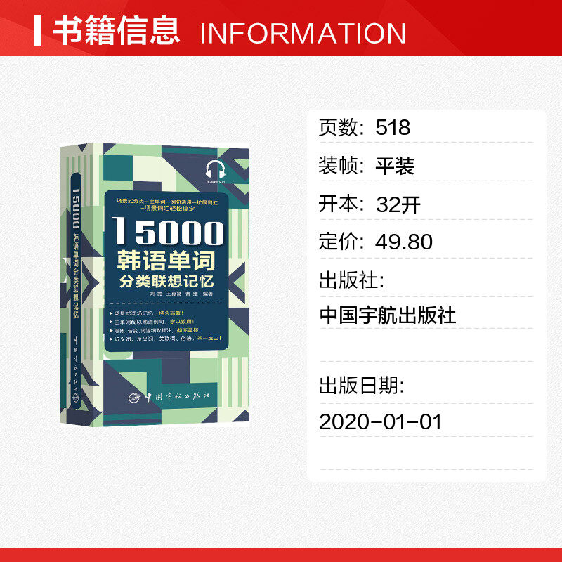 15000 корейских слов категория Lenovo Memory Liu Xia, Wang Jiahui, подлинная книга Cao Wei Синьхуа книжного магазина Wenxuan Официальный веб -сайт China Aerospace Press