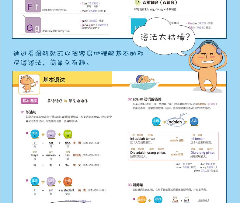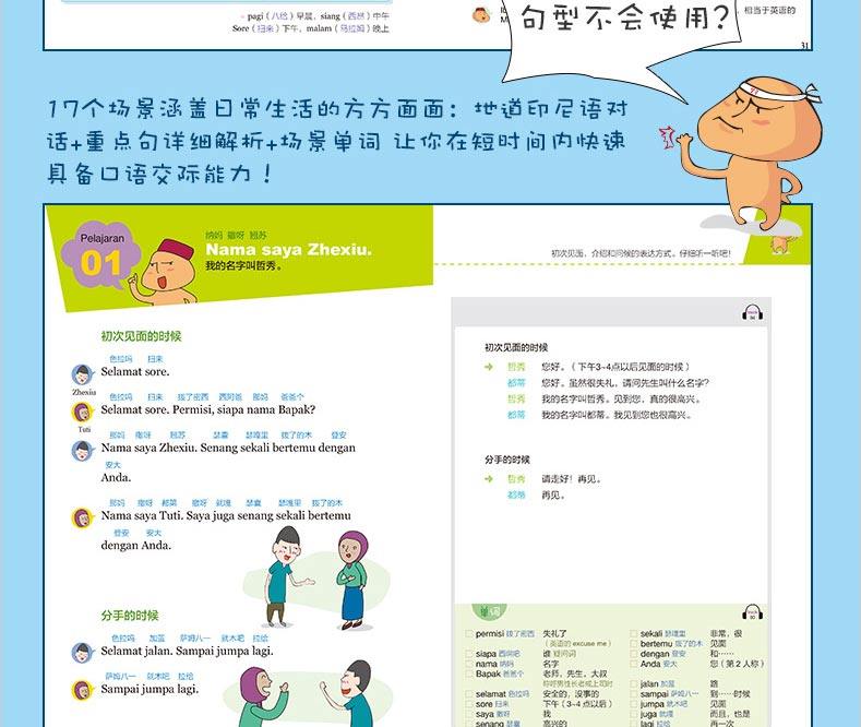 Слово «предложения« Веселая карта для интерпретации индонезийского быстрого начала работы »сосредоточено на ярких и свежих выражениях, используемых Индонезией в Индонезии. Чтобы попытаться избежать сложных и сложных моделей предложений, добавление простых и понимающих моделей предложений и составляет один за другим.Выберите необходимую основную грамматику в диалоге и используйте интересные иллюстрации, чтобы объяснить.Любой легко начать с индонезийского произношения на китайском языке.