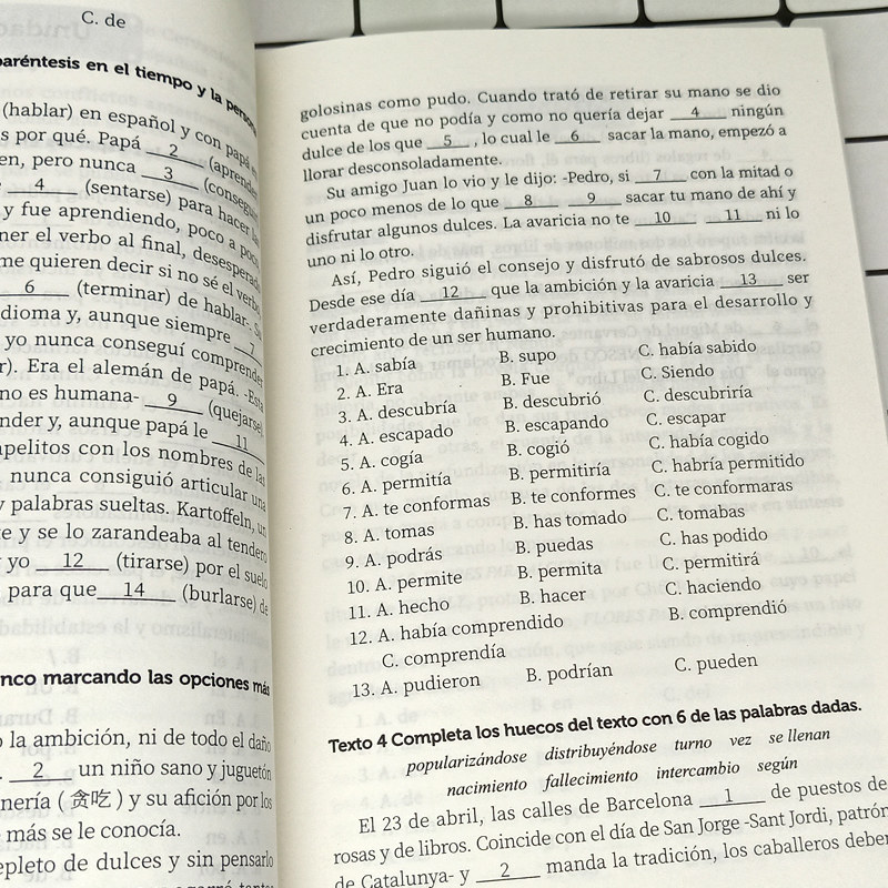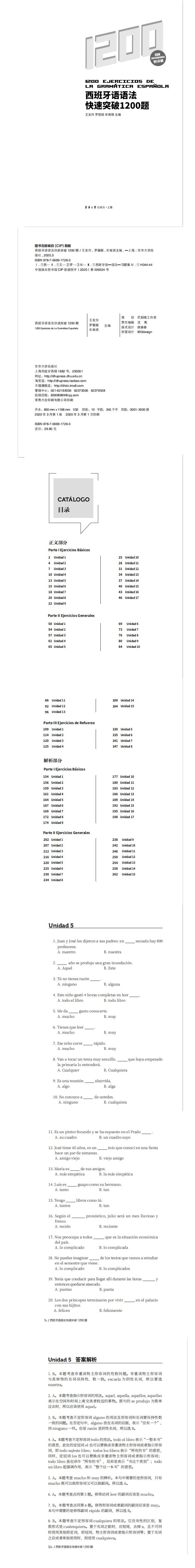Эта книга39Эта книга состоит из единиц, из газет, журналов и книг в Испании и Латинской Америке.76Статья статьи, поделиться вместе1200Даосизм разделен на три части: базовая консолидация, комплексная подготовка и улучшение способностей, в том числе почти все знания испанской грамматики.1.Основная консолидация в основном основана на однозначных вопросах выбора, рассмотрении и сортировке различных грамматических точек испанского языка;2.Комплексное обучение находится в форме коротких очерков, включая тип корон, предлоги, короны и предлоги, глаголы и выбранные в пробелах;3.Способность улучшить способность - это длинные статьи, которые сложнее, чем вторая часть второй части.Существуют также подробные ссылочные ответы за книгу, которые дают профессиональные объяснения на каждый вопрос, что поможет учащимся с большой помощью, чтобы твердо понять грамматические моменты.Эта книга может использоваться в качестве вспомогательного упражнения испанских начинающих и читателей с определенной грамматической основой в качестве грамматического обучения также использоваться в качестве испанской специальности четыре, а такжеDELE,SIELE, Справочная библиография испанского вступительного экзамена в колледже. |