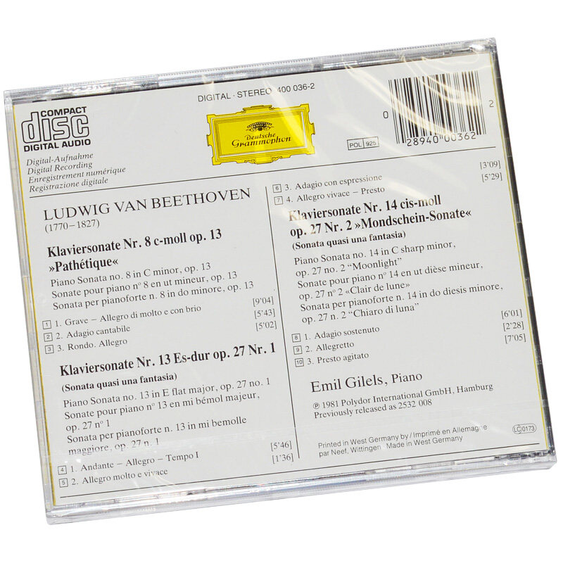 Bethoven Piano Sonata Moonlight/Gilels Импорт CD Disc Penguin Samsung с 4000362
