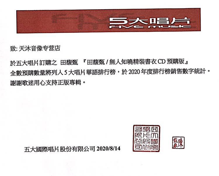 Пятый новый сольный альбом Тянь Фучжэня [No One Knows]