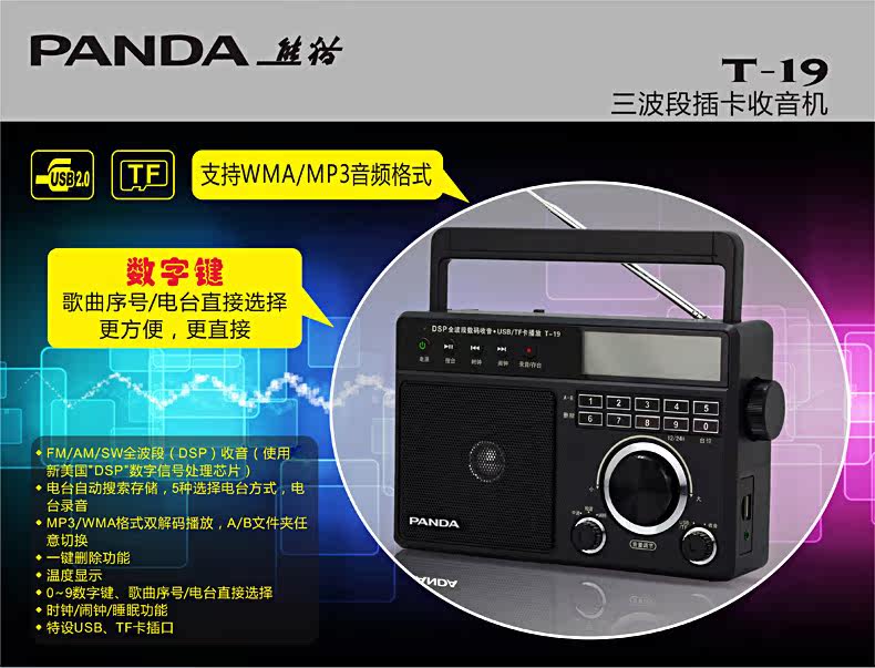 PANDA/熊猫 T-19 полная полоса портативная карта на рабочем столе многополосный FM Semiconductor Retro Radio