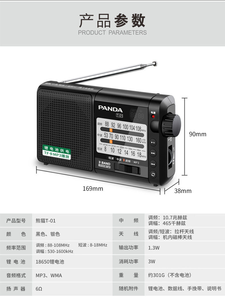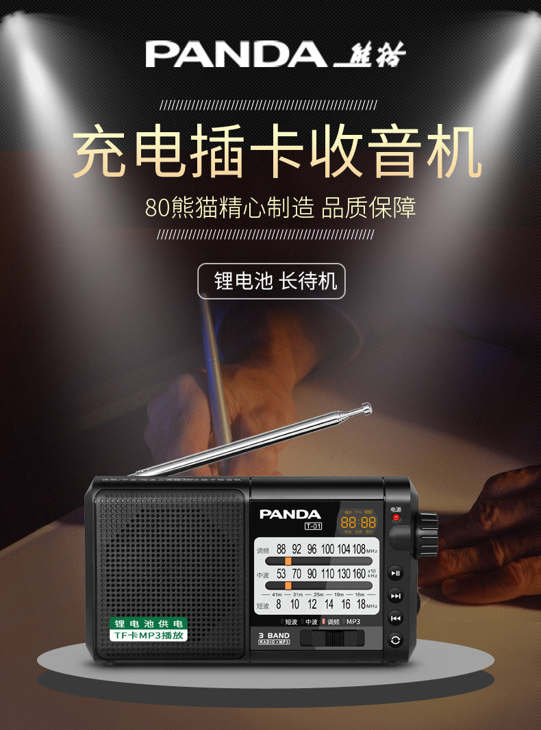 Panda T-01 Радио-специфическая зарядка Полная полоса FM вещание полупроводниковые ретро игра All-in-One