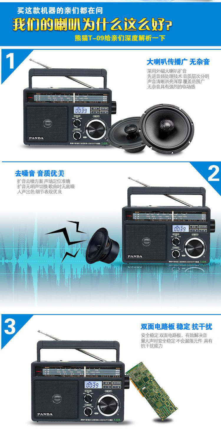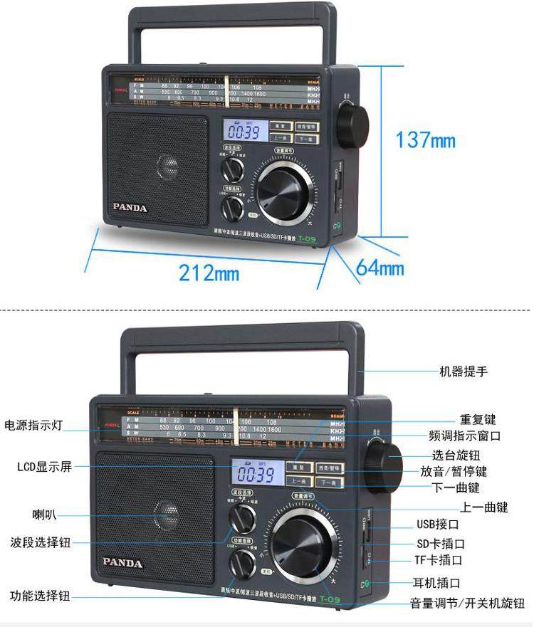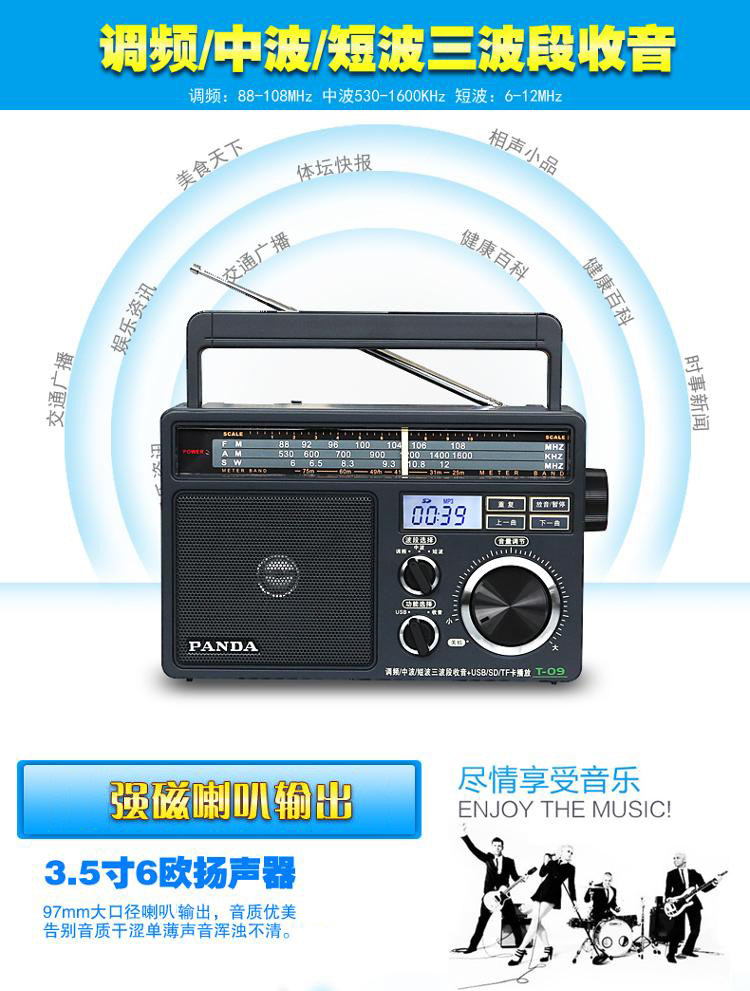 Причина2: FM/средняя волна/короткая волнаРадио поддерживает Usk/SD Card/TF Function Function (воспроизводимая музыка)Высокая чувствительность, низкий шум, стабильное качество и надежность применяют высокий объем динамиков и красивое качество звука