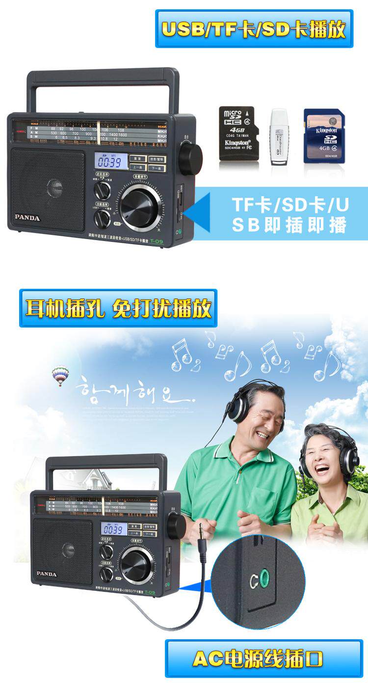 Panda/Panda T-09 Полная полоса удобная радиоподобная радиопользовательская карта Mp3 Player T09 Пожилой вставной динамик вставка