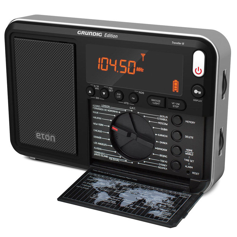 The Etón Traveler III получает каждую радиоволнувную длину AM (MW), FM, Longwave (LW) и короткую программу (SW) дома или Abroid.’Легко установить интервал и частоту, чтобы ваши станции были громко и ясны, где бы вы ни находились.