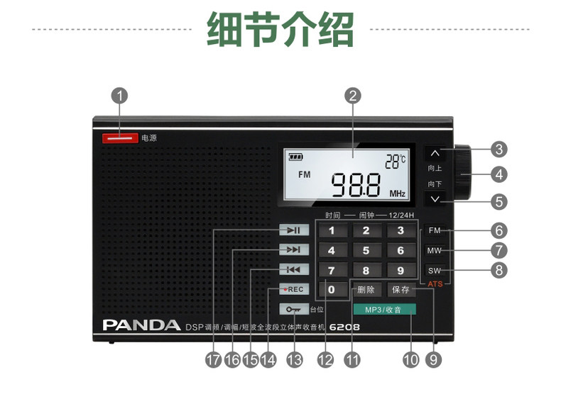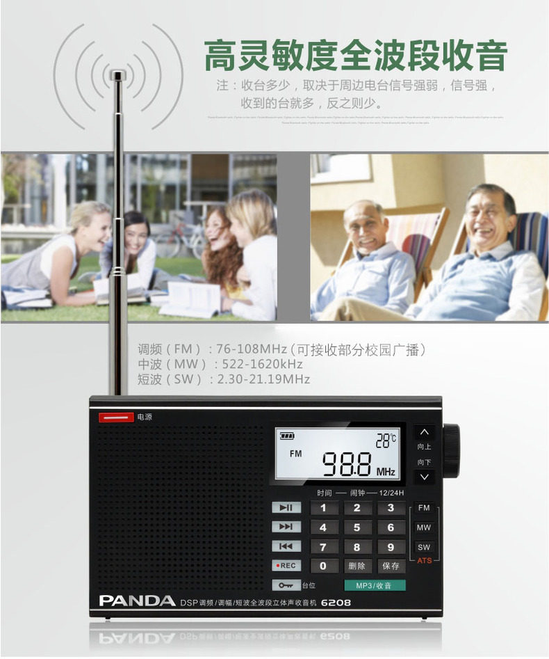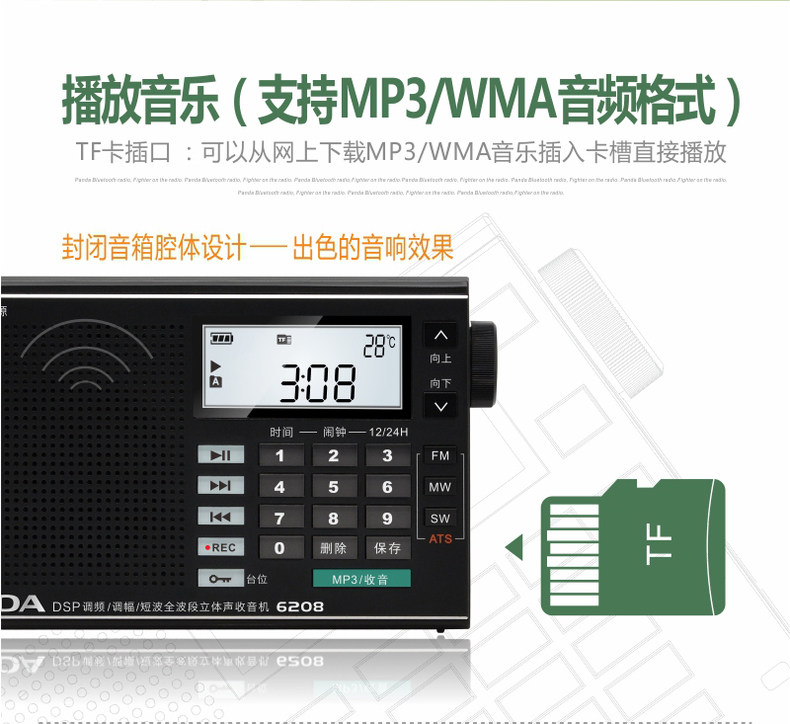 PANDA/熊猫 6208 Радио-полная карта карты MP3 Стерео портативная старика полупроводника трансляции