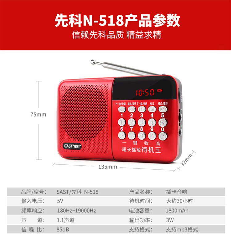 SAST/Xianke N518 Радио проходная карта Зарядка портативная певица Пекаер Micro Semiconductor