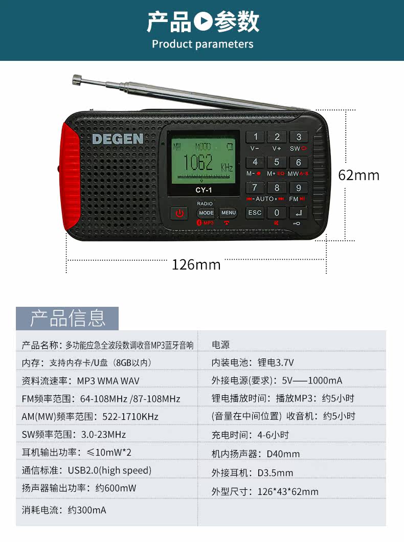 Degen/Slaughter Cy-1 Радио ㄎ Ручное переполнение профилактики бедствий