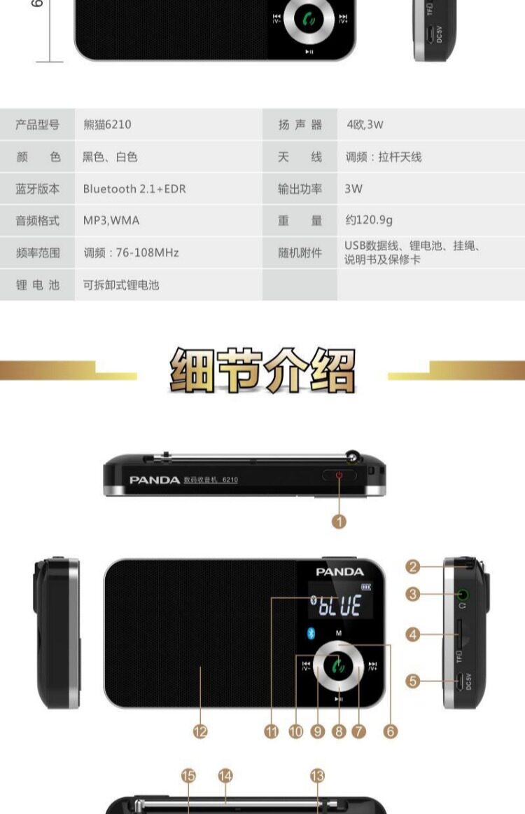 Panda/Panda 6210 Радиозарядка Частотная зарядка -в IN беспроводной динамик Bluetooth Mini Portable Olderly Mp3