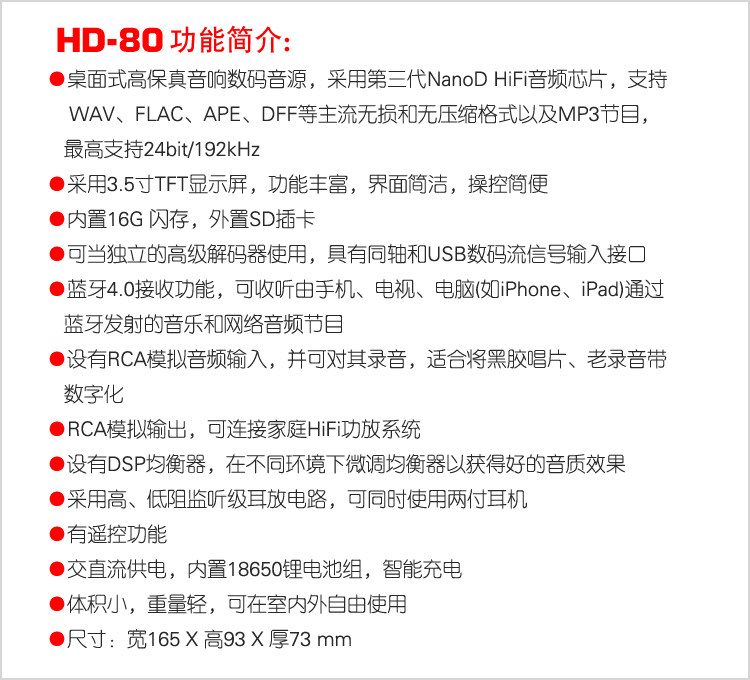 TECSUN/DESHENG HD-80 SIMUTION SIPTITUTE/HIFI Digital/Desktop Digital Source
