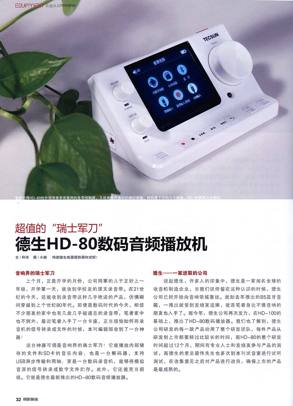 &[nbsp; 研制]&[ldquo;好声音]&[rdquo;的音响产品,非短期之功。如果没有众多热心老师、老烧的支持和鼓励,德][生不可能在短短的数年间,基本完成音响系列产品设计试产。特别是试销阶段,数千位音响、音][乐发烧友购买我们的产品,做了]&[ldquo;测试鼠]”—&[mdash;在国内外不同的发烧环境、在不同的实验室中、][用不同的音响设备配置,进行广泛使用测试,为完善产品出了力,让我们受益不浅!其中TECSUN]&[nbsp;HD-80音箱管家和]&[ldquo;草根]&[rdquo;耳机经受了众多音响专家,音乐烧友的使用评测、挑刺,得以完善!正式投放市场。]