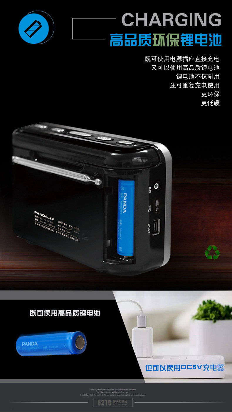 Panda 6215 Беспроводное портативное радио Bluetooth для пожилых людей Новый зарядный полупроводник для домашнего использования